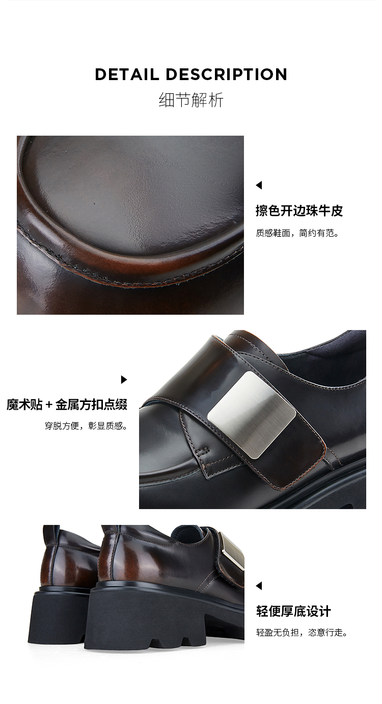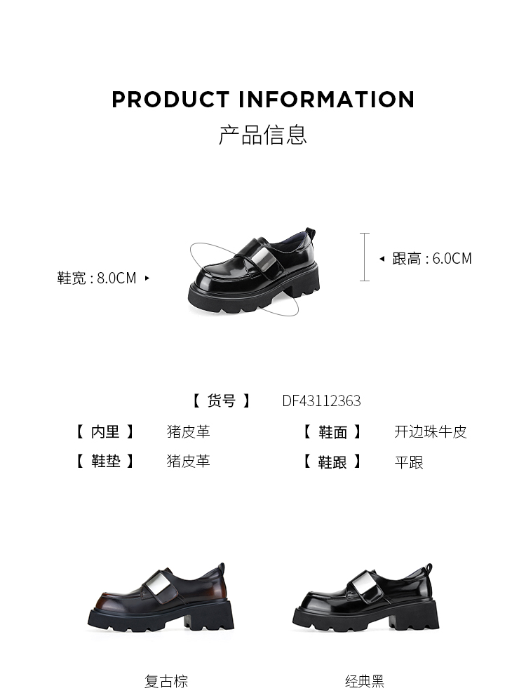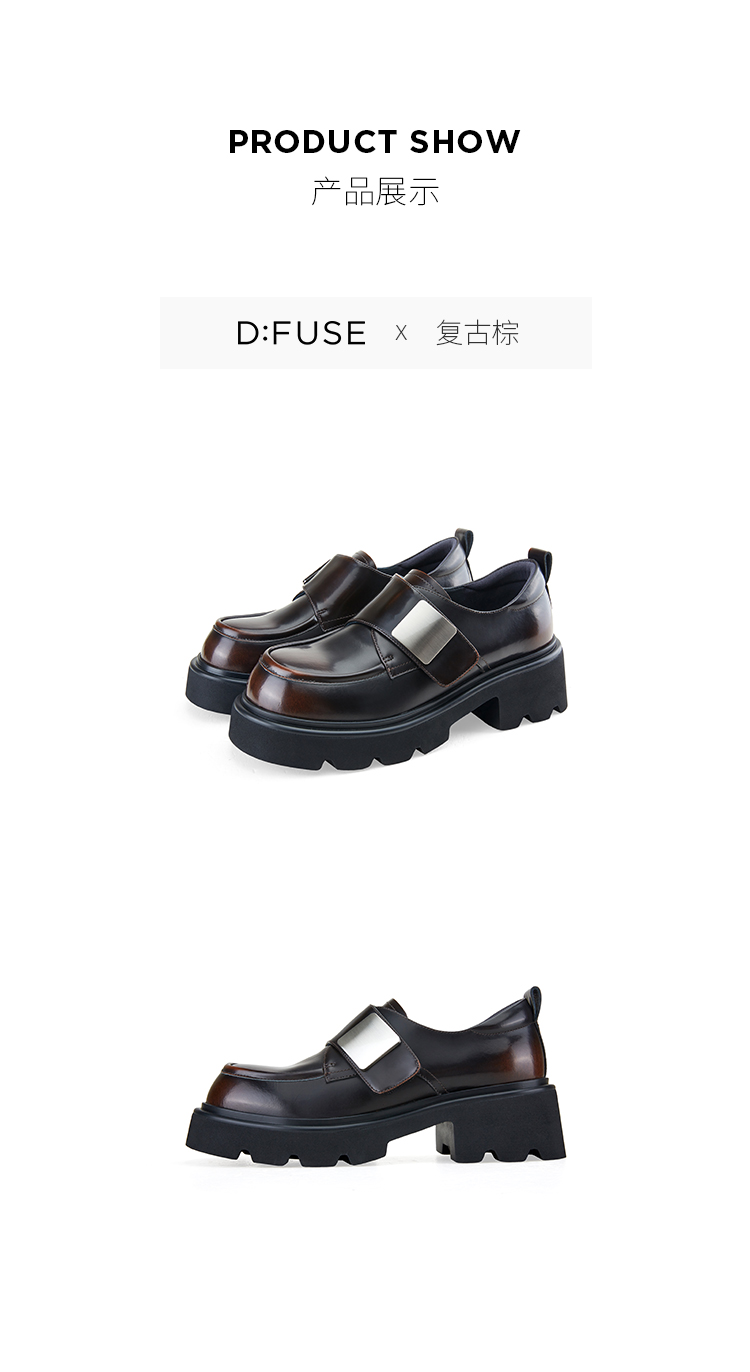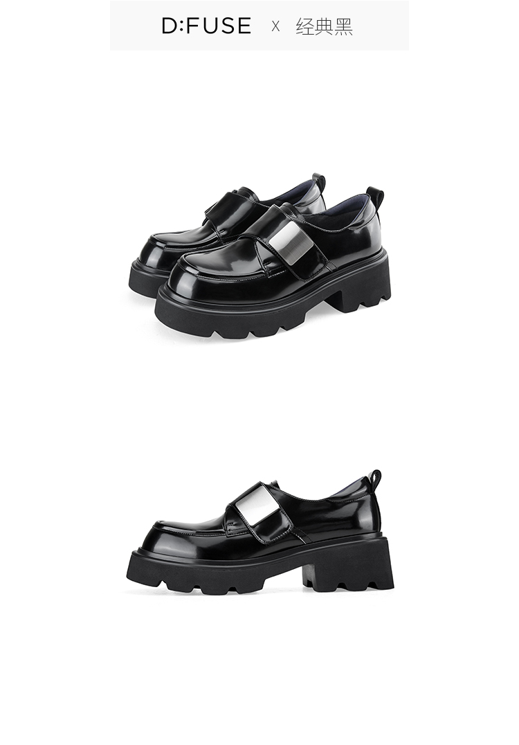 D:FUSE迪芙斯秋季新款质感牛皮魔术贴百搭乐福鞋轻便厚底增高鞋DF43112363