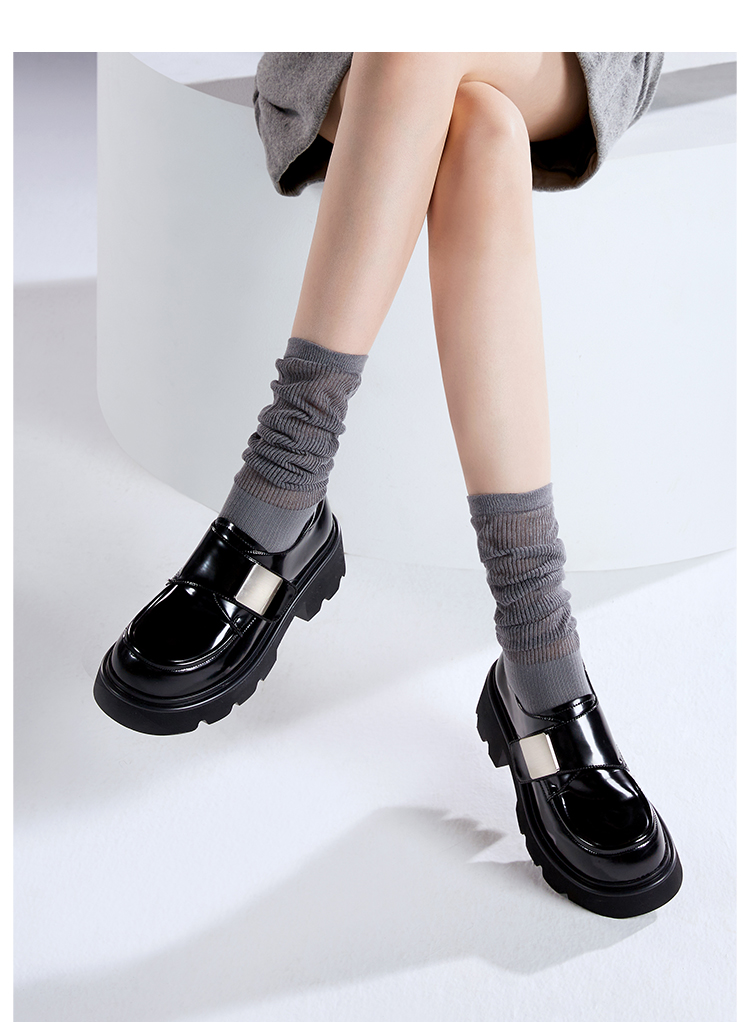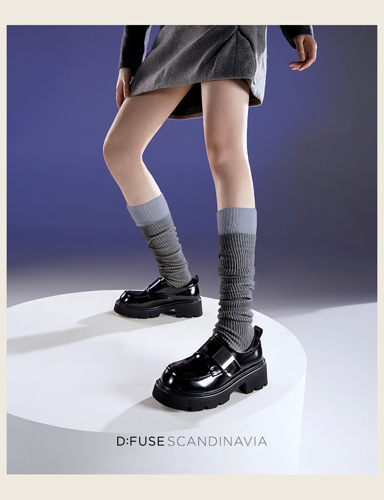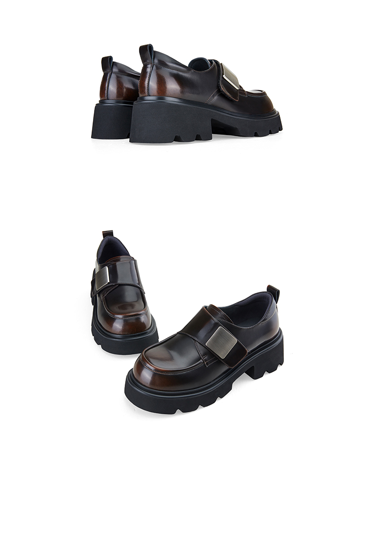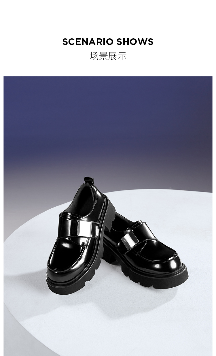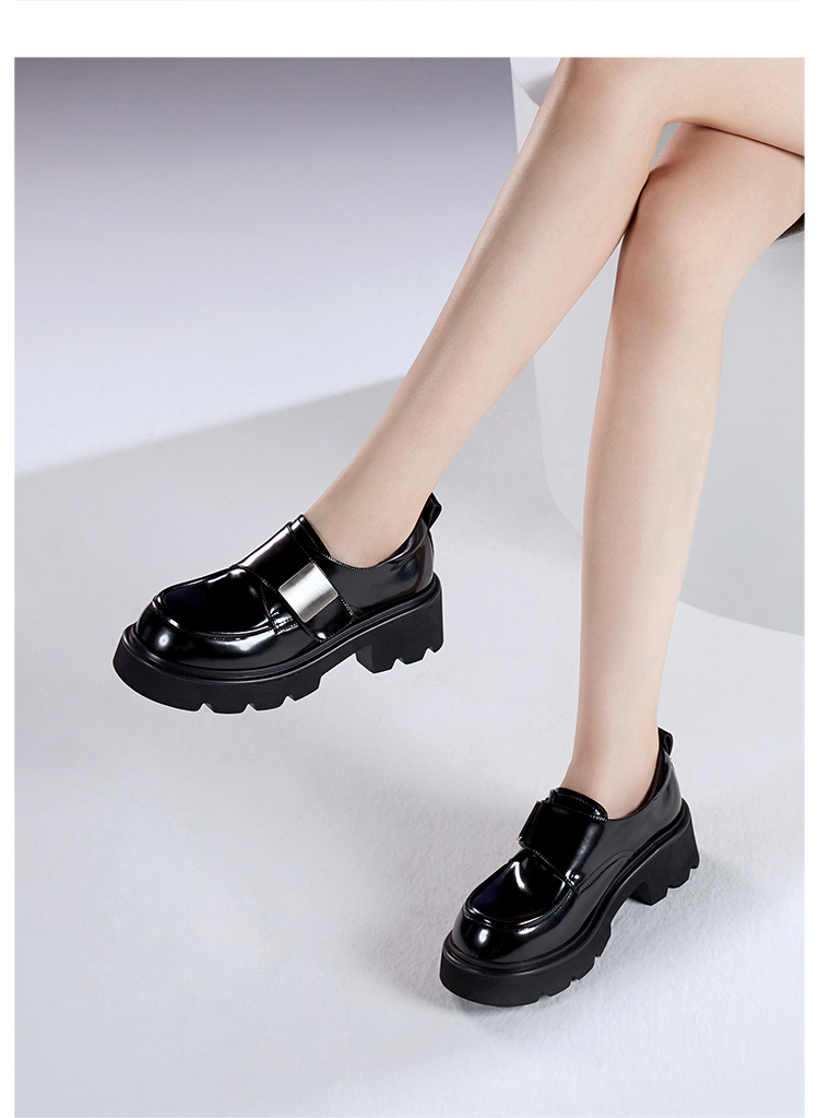 D:FUSE迪芙斯秋季新款质感牛皮魔术贴百搭乐福鞋轻便厚底增高鞋DF43112363