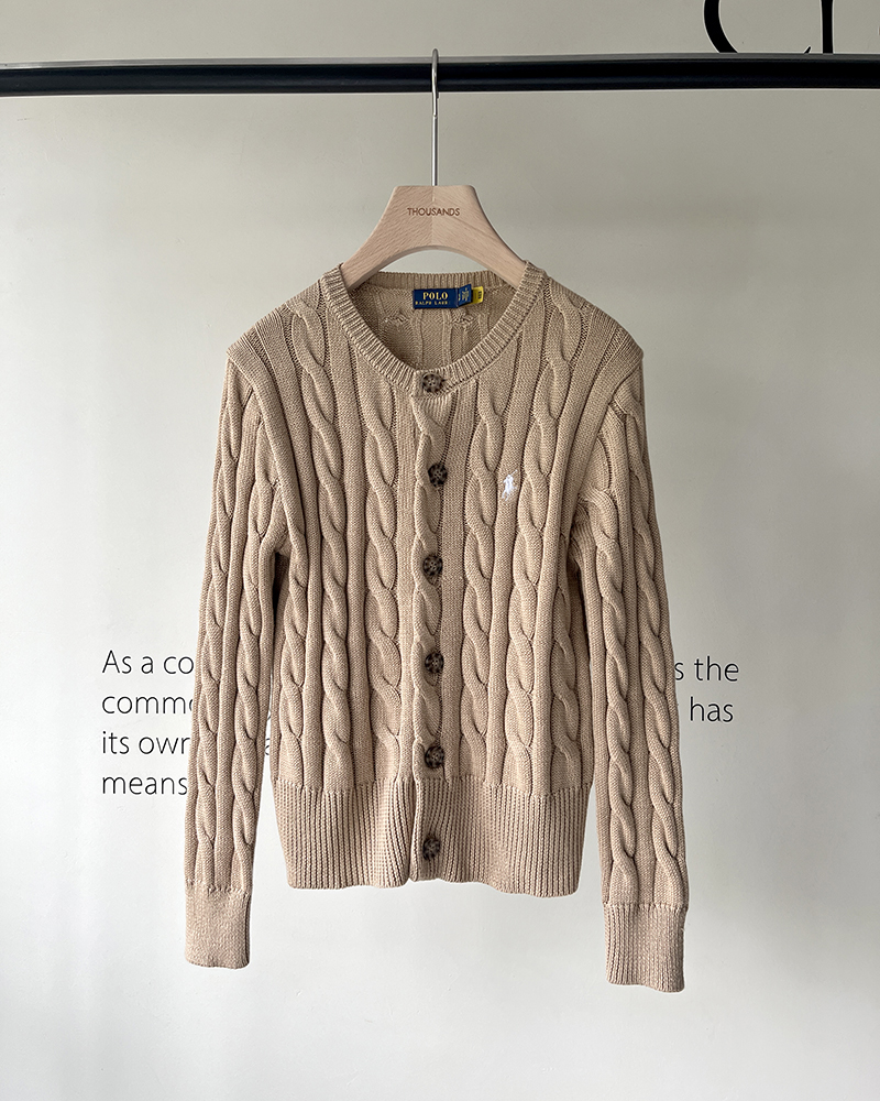 单品包邮现货 THS-无 RL马球 女士源厂尖尾PRL羊毛棉Cable Knit经典圆领女款开衫 5色 BM3202