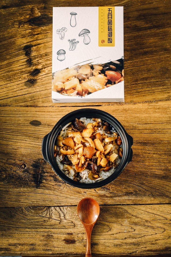 五目菌菇御饭沿用“和菜头特选”一贯的高标准。新鲜的松茸、红乳牛肝菌、滑子蘑、杏鲍菇、球盖菌历经3轮筛选,品相和品质上等者被选出加工切片。利用天然的保鲜技术制成袋装菌菇片,在不增加任何食品添加剂的情况下,最大程度地保留五种菌菇的鲜、香、甜味。
