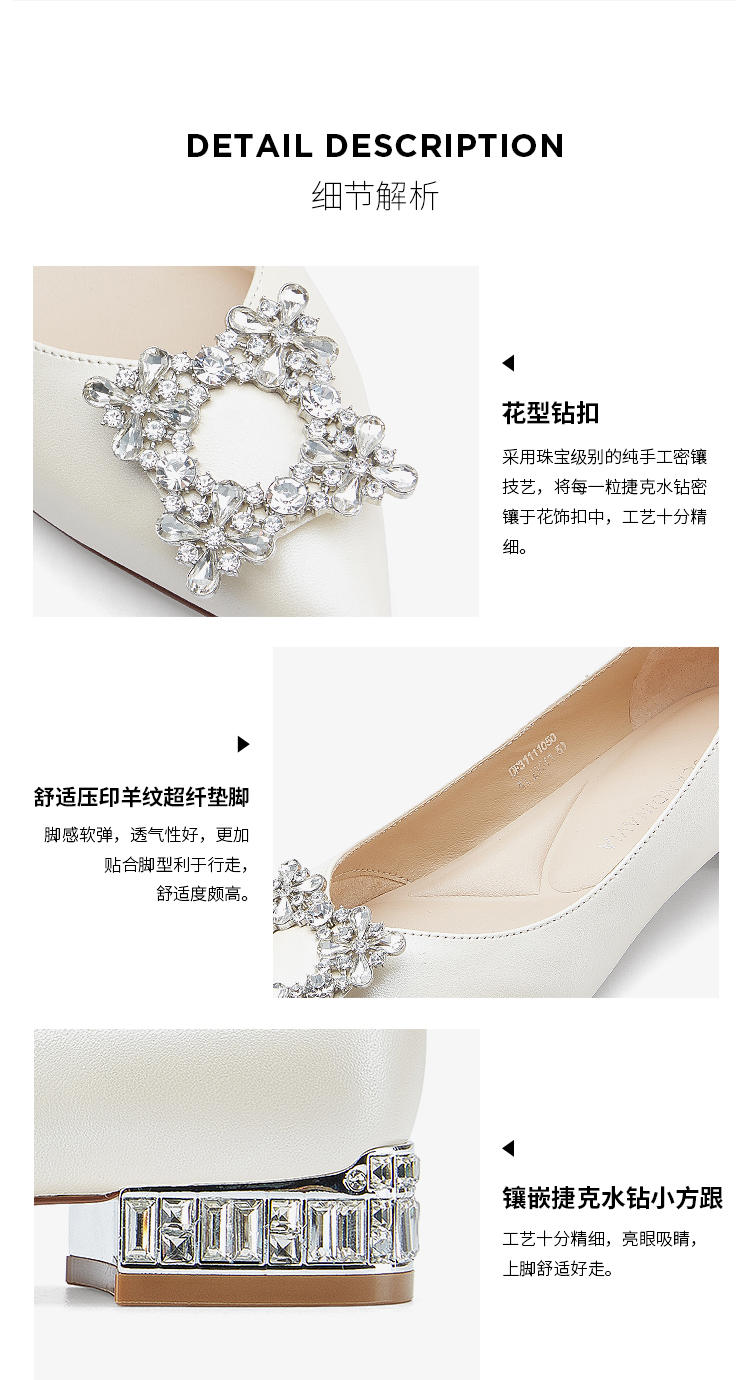 D:FUSE/迪芙斯2023春季新款尖头水钻花饰扣低跟单鞋女鞋DF31111050