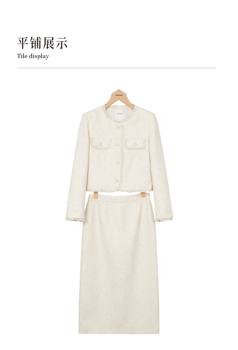 oldcolour秋季新款通勤时尚名媛小香风纯色长袖套装女P341401A1