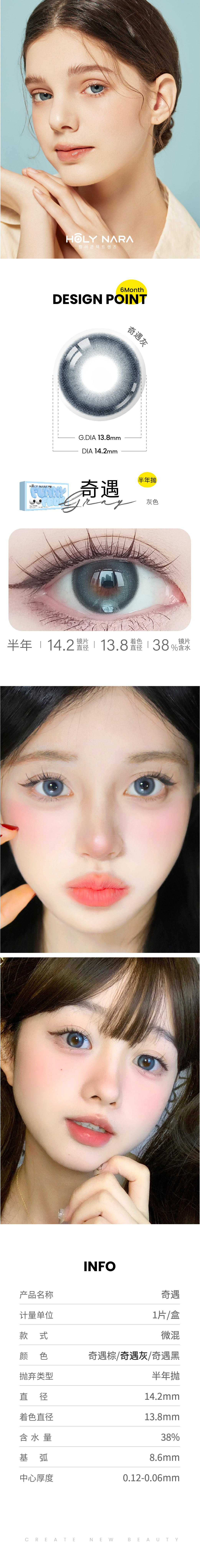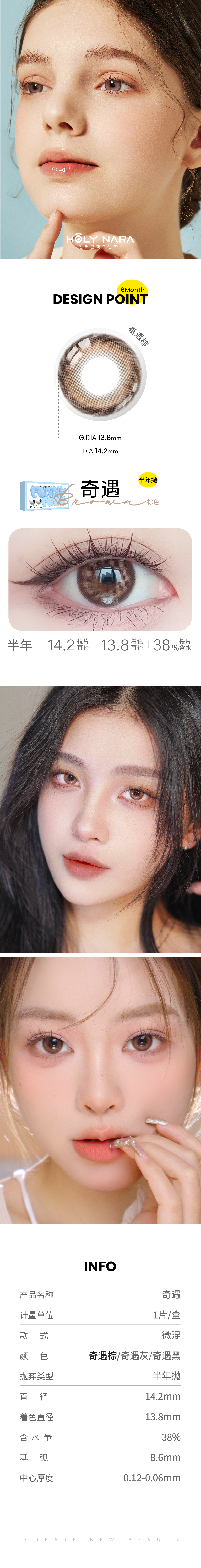 【半年抛】Holy Nara奇遇灰/棕新品上市 直径14.2含水量38%(度数不同请拍两盒)