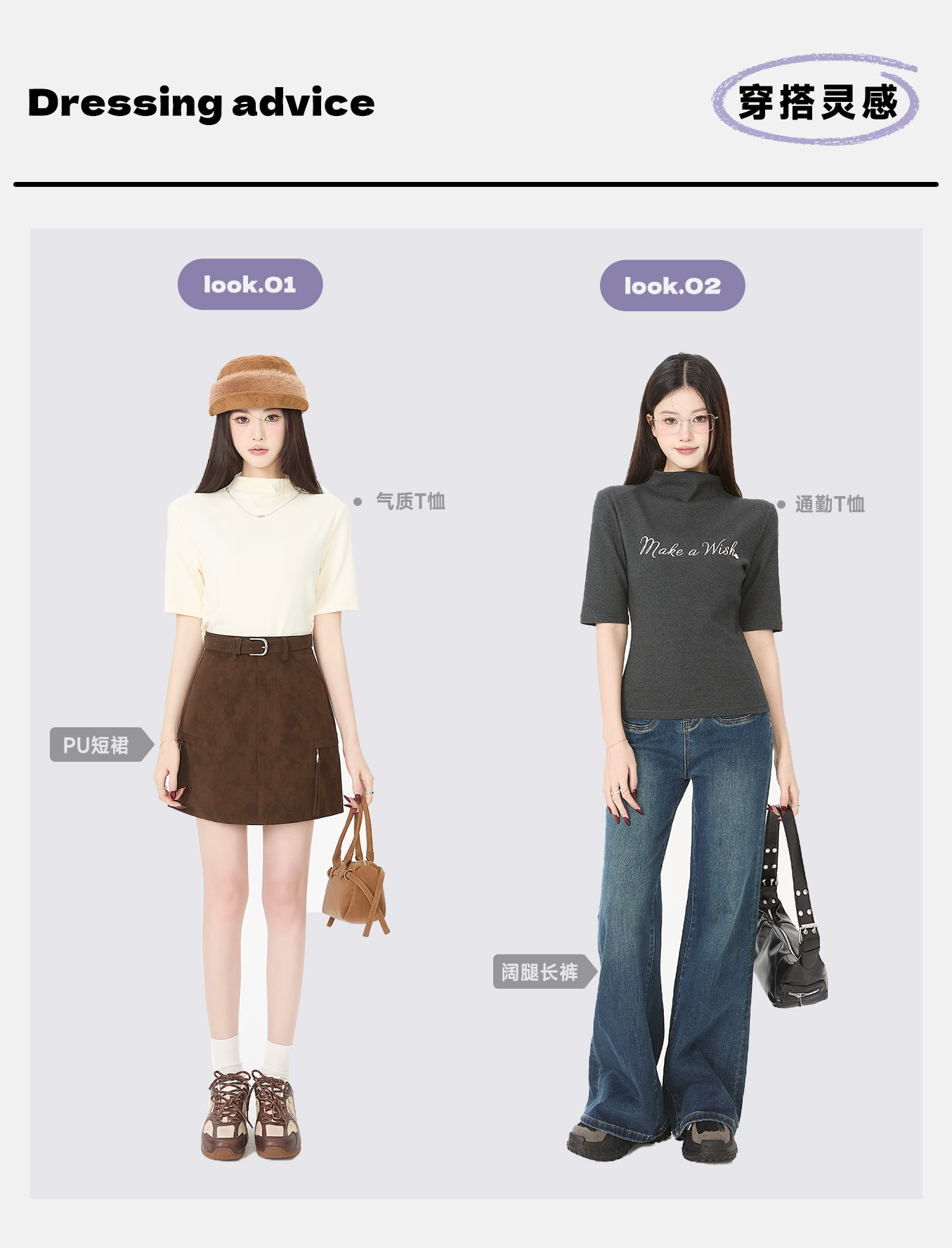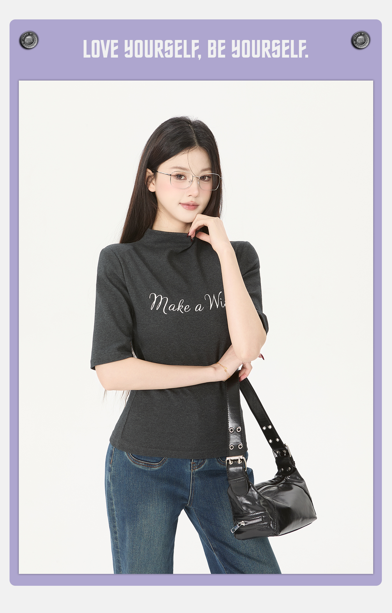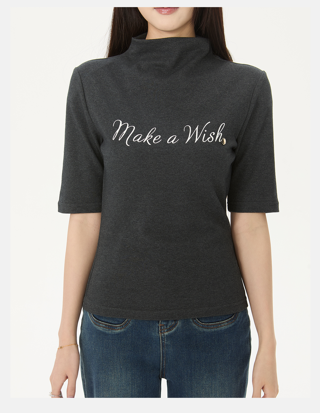 P&X设计师女装2026春季字母半高领半袖修身T恤 826102095 灰色