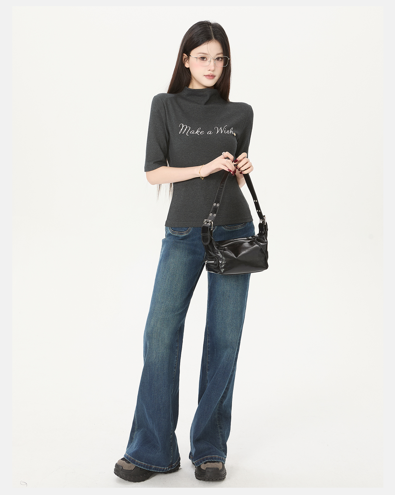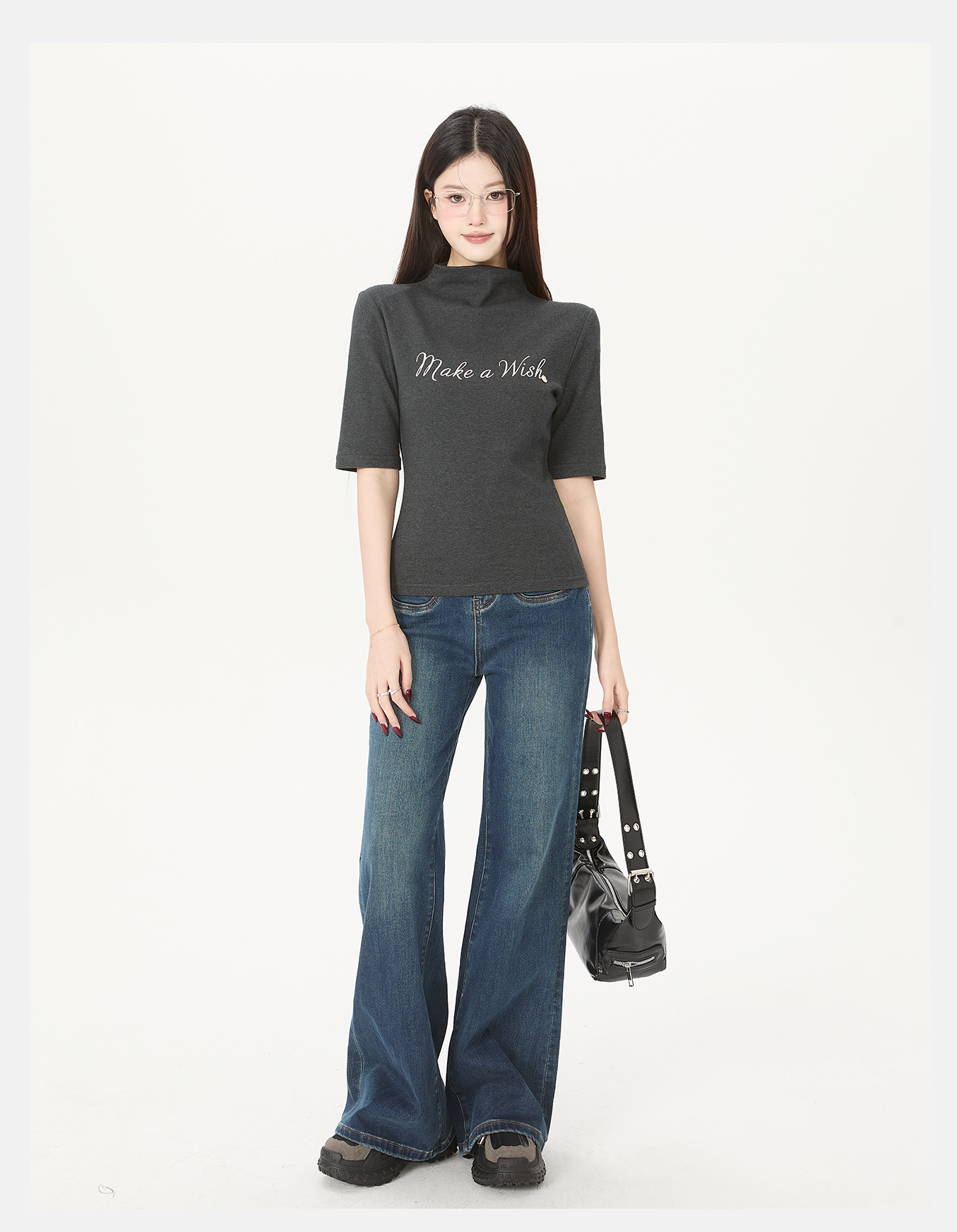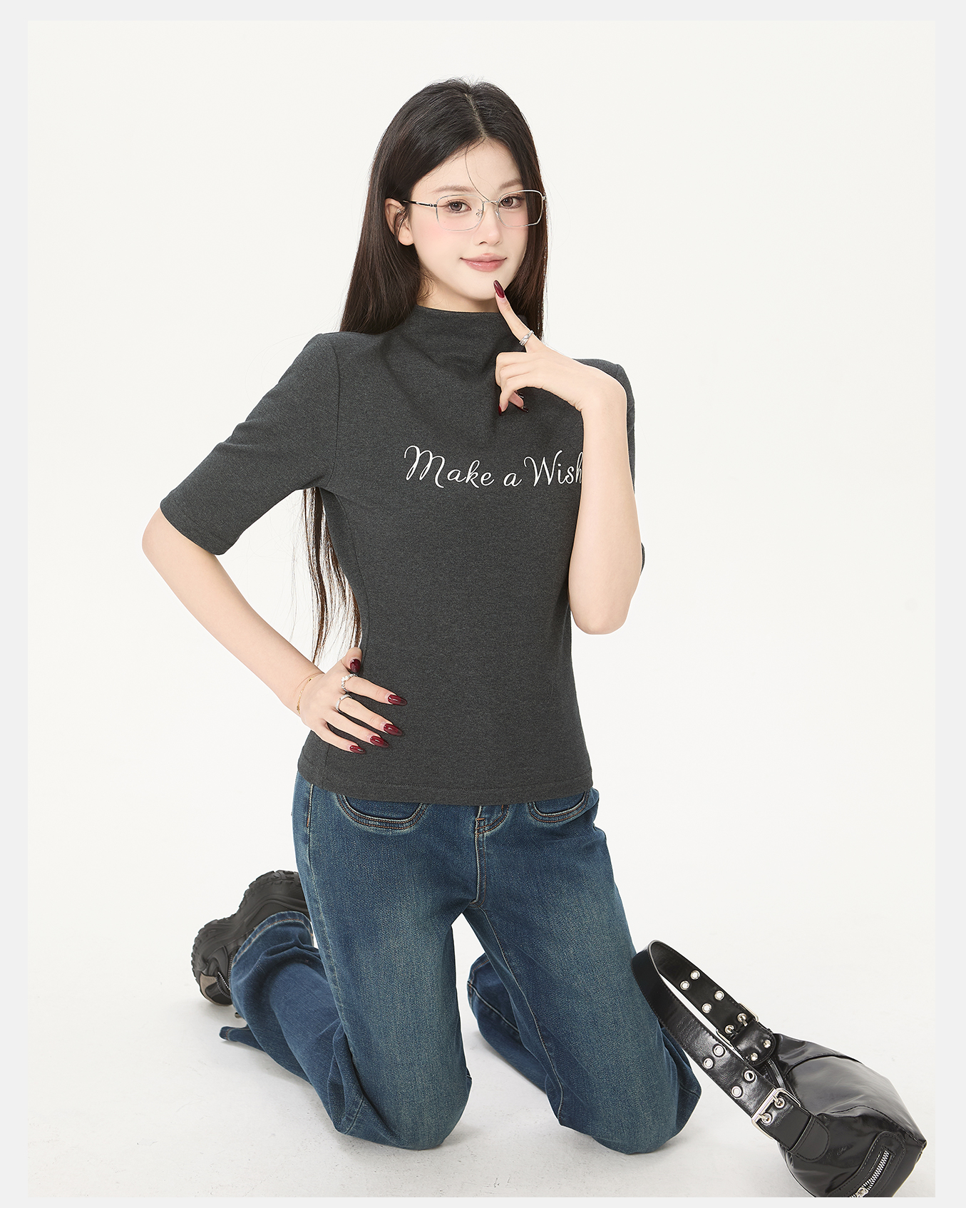 P&X设计师女装2026春季字母半高领半袖修身T恤 826102095 灰色