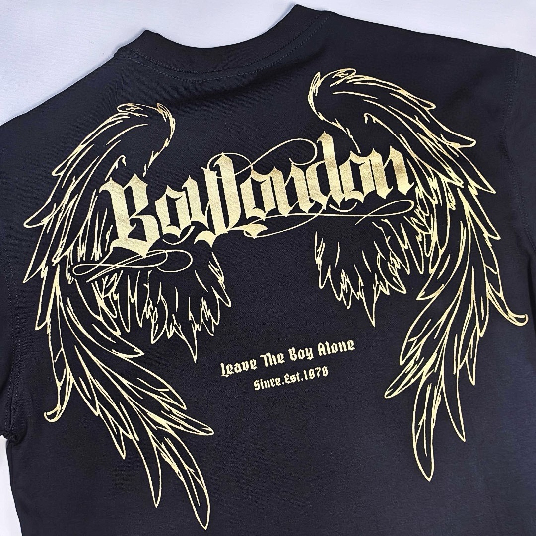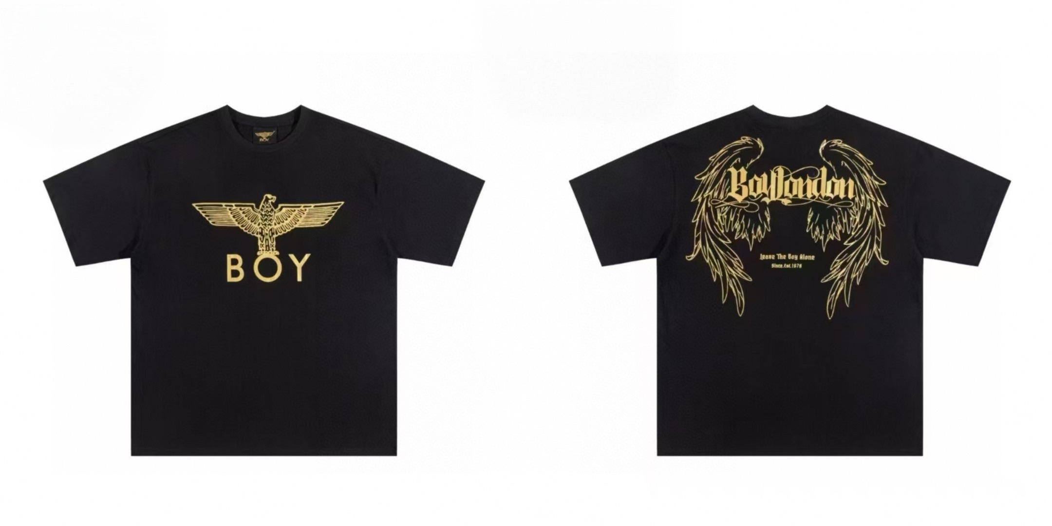 BOY2025新款烫金老鹰天使翅膀图案字母印花休闲情侣短袖。