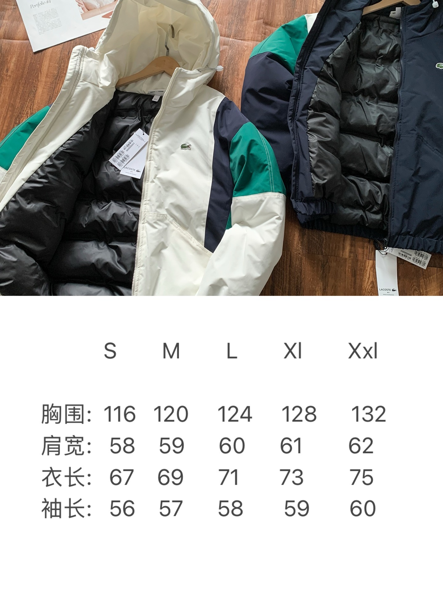 原版百分百聚酯纤维面料,内里填充仿绒丝手感饱满,一件过冬!胸前鳄鱼家经典的小鳄鱼刺绣标饱满立体简约轻奢,可以驾驭任何场合 超重工顶配版本,全套原版三标辅料齐全
