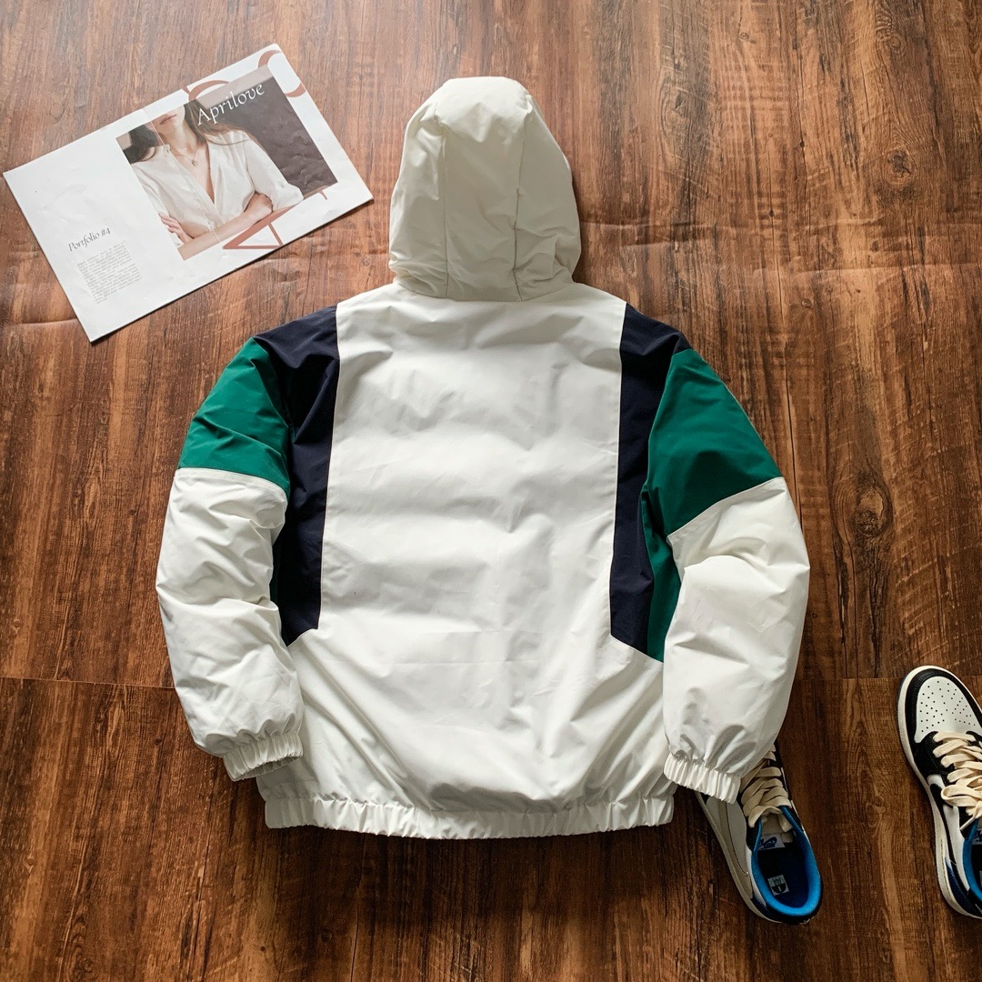 法国鳄鱼男装时尚通勤拼色连帽保暖面包服棉服外套