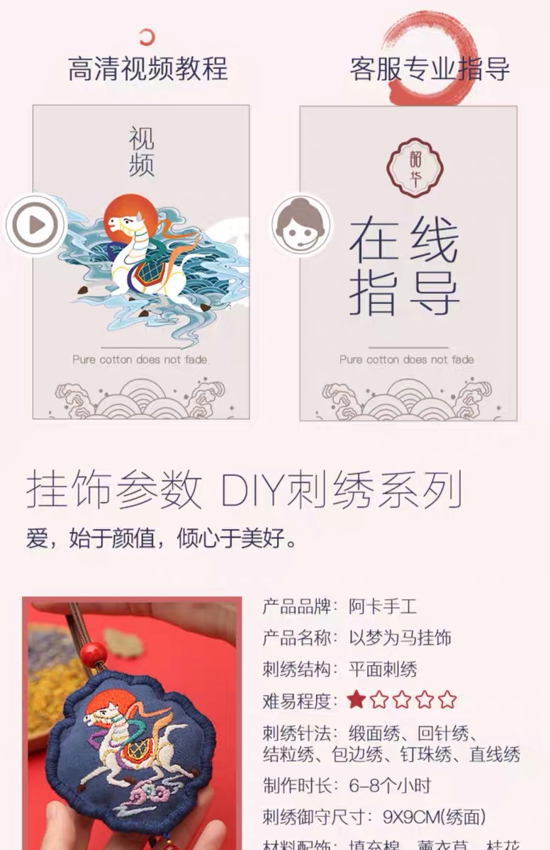 【限时秒杀】以梦为马平安符( 手工刺绣diy材料 ) 古风护身挂饰,可以自己绣的平安福