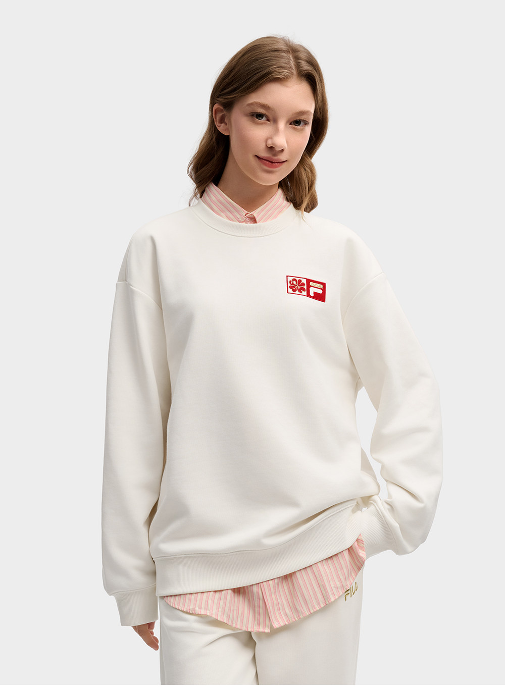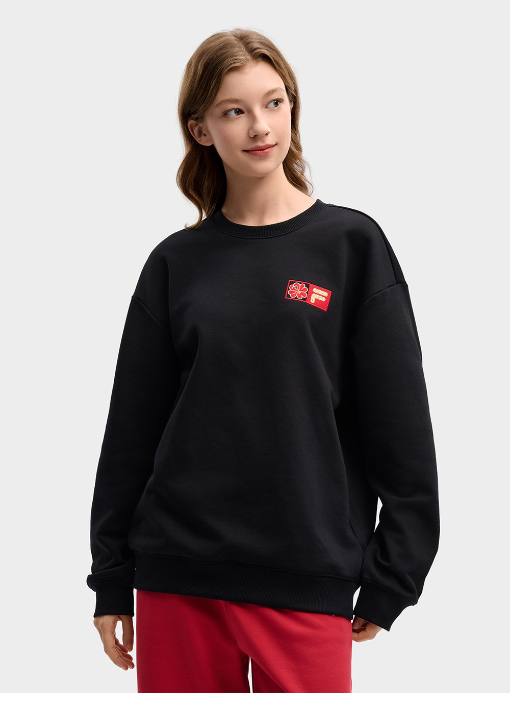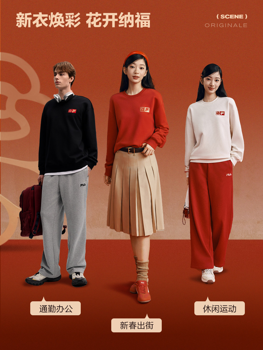 前胸点缀海棠花与FILA标识组合刺绣以细腻工艺诠释品质,点亮新年穿搭