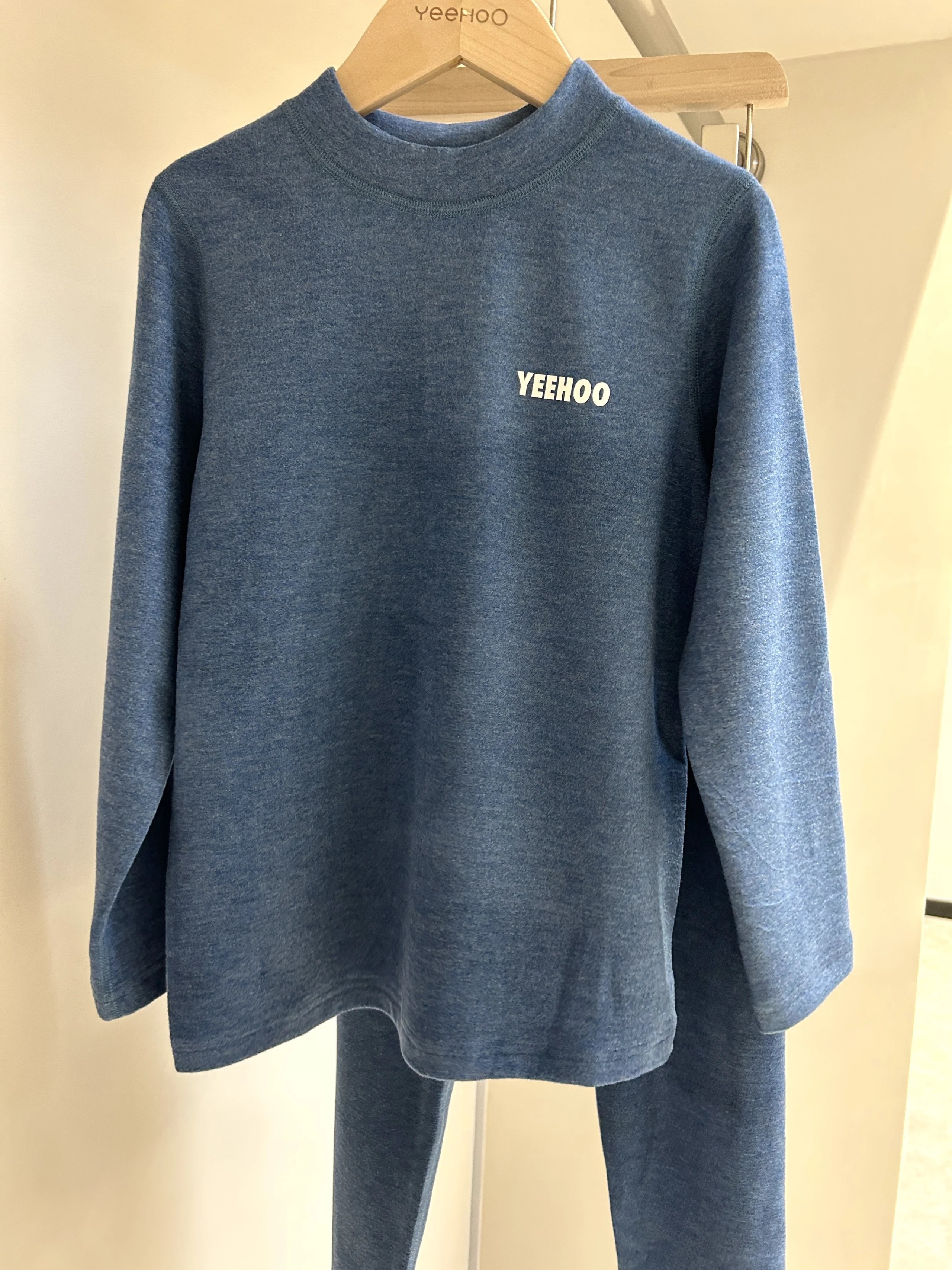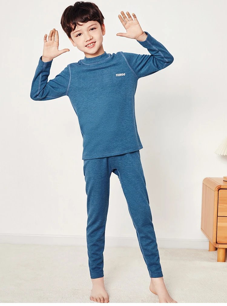 【英氏YeeHoO 双面磨绒羊毛➕蚕丝男女童基础款蓄热保暖内衣套装】 YDC05