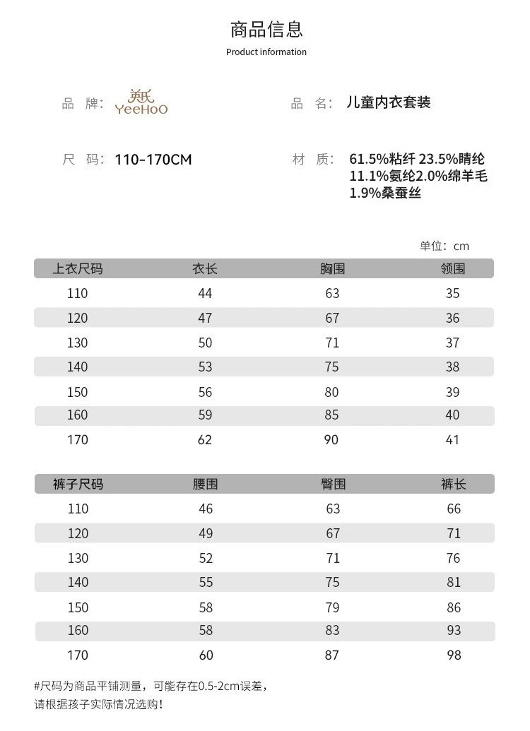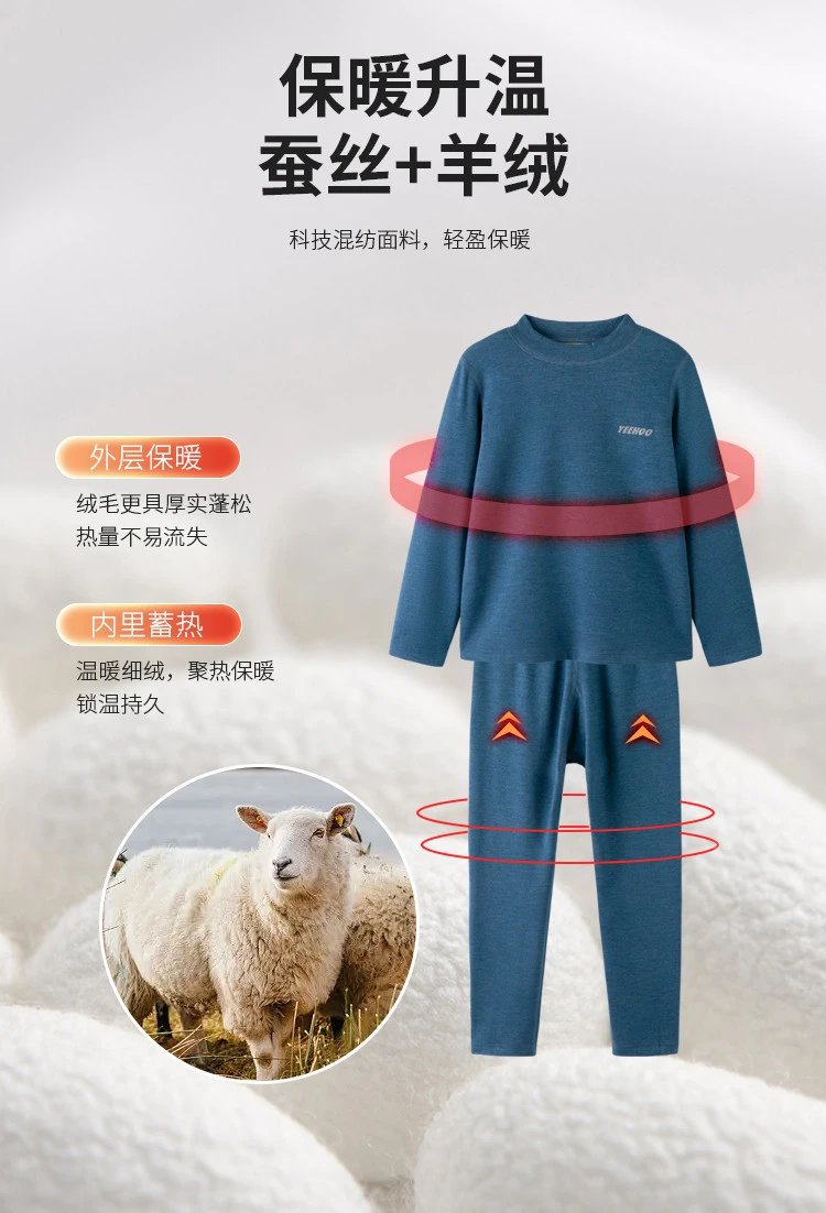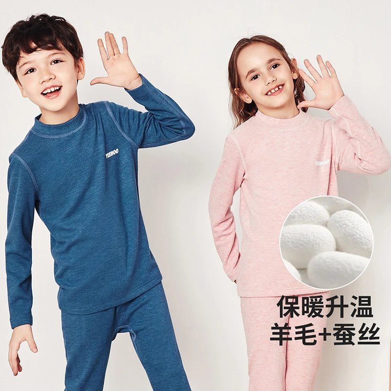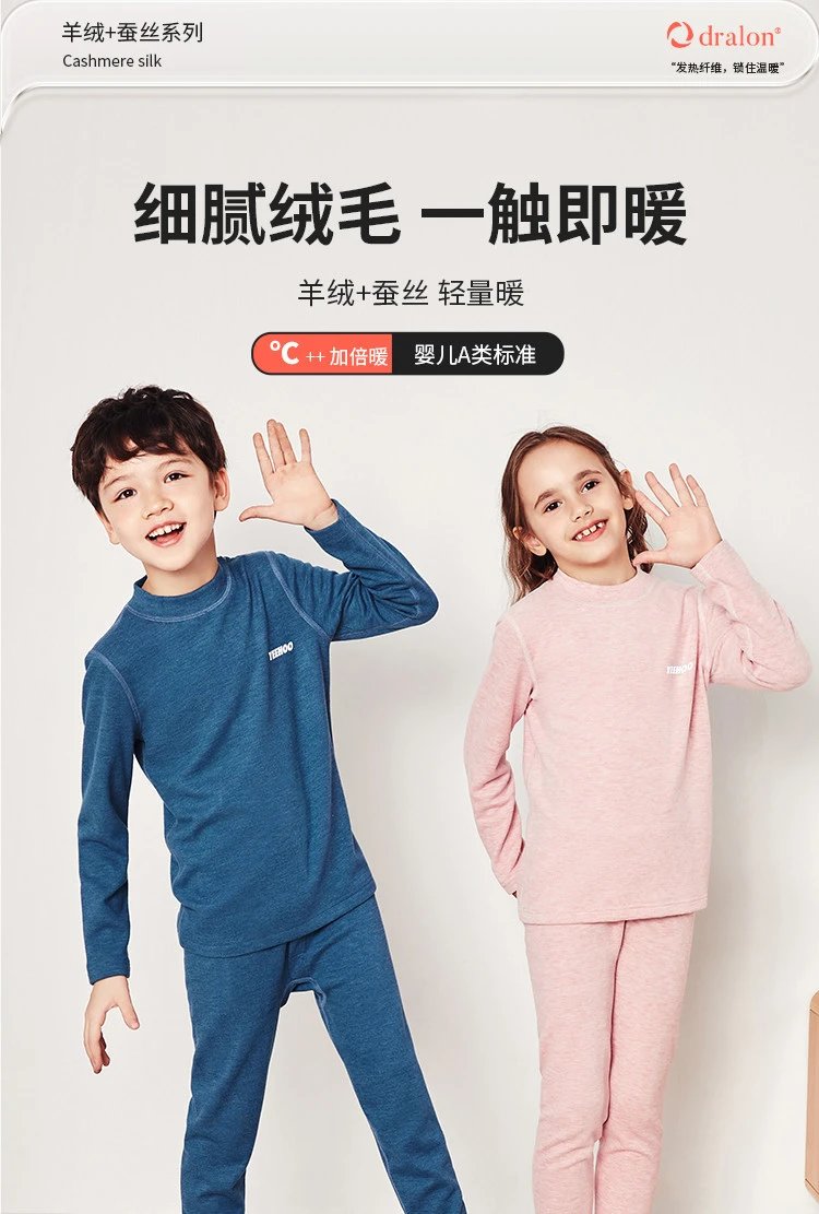 看看这款男女童基础款蚕丝羊绒保暖内衣套装