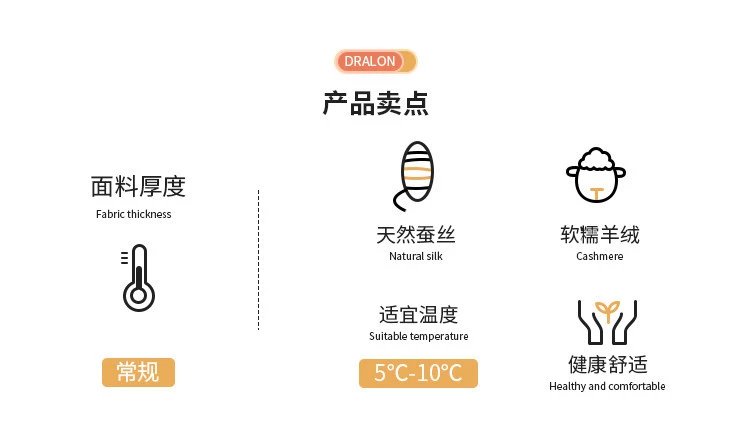 甄选类一等品,天然蚕丝+软糯羊绒