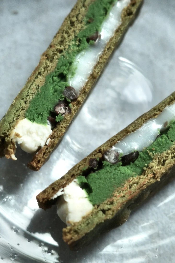 (上图为抹茶白玉饼干纵向切开的横截面)