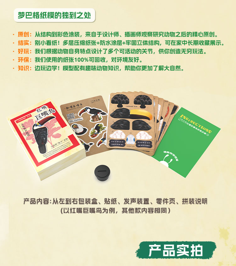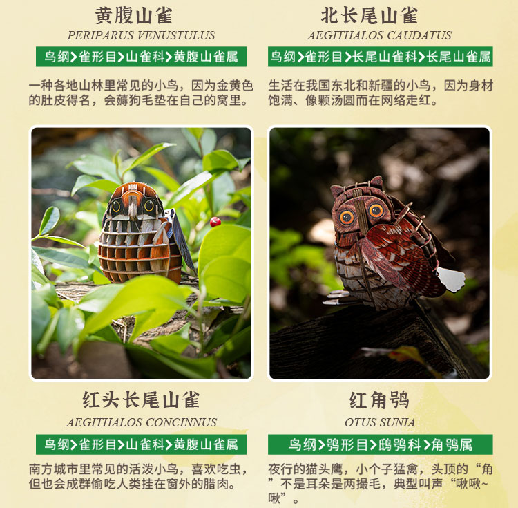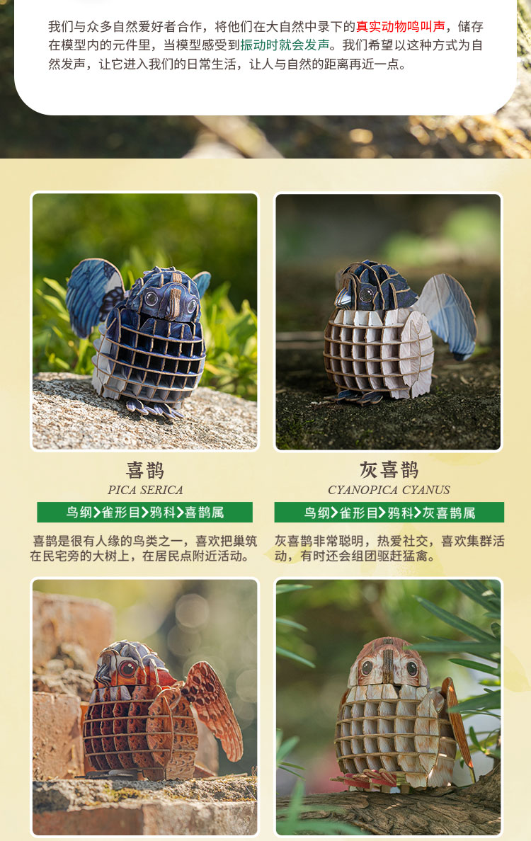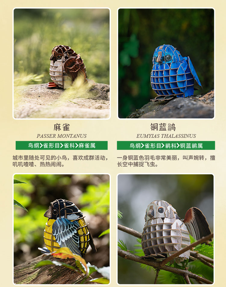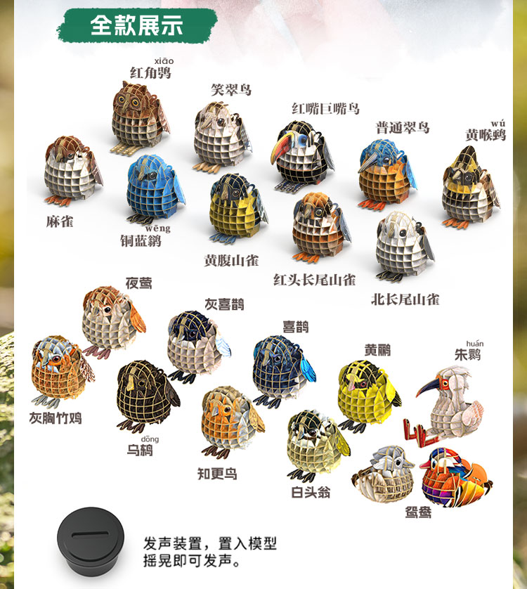 上新 | 博物文创 为自然发声系列纸模麻雀红头长尾山雀翠鸟可发声纸模