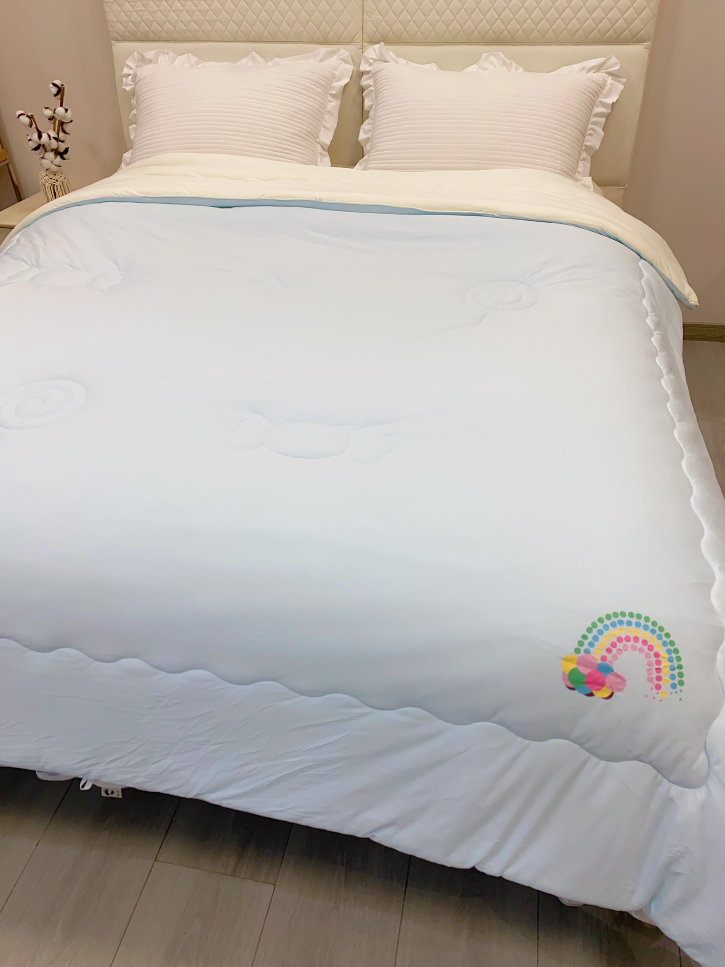 这款泡泡糖果被也太懂少女心和宝妈心了!A类母婴级针织面料,软乎乎的,裸睡都巨舒服😌 被子上的棒棒糖固定和彩虹图案,直接把童趣拉满~ 填充是牛奶绒材质,保暖又轻盈,4斤多重量,秋天或者供暖地区盖刚刚好~关键是安全等级拉满,给娃盖、自己裸睡都安心到飞起🛏️