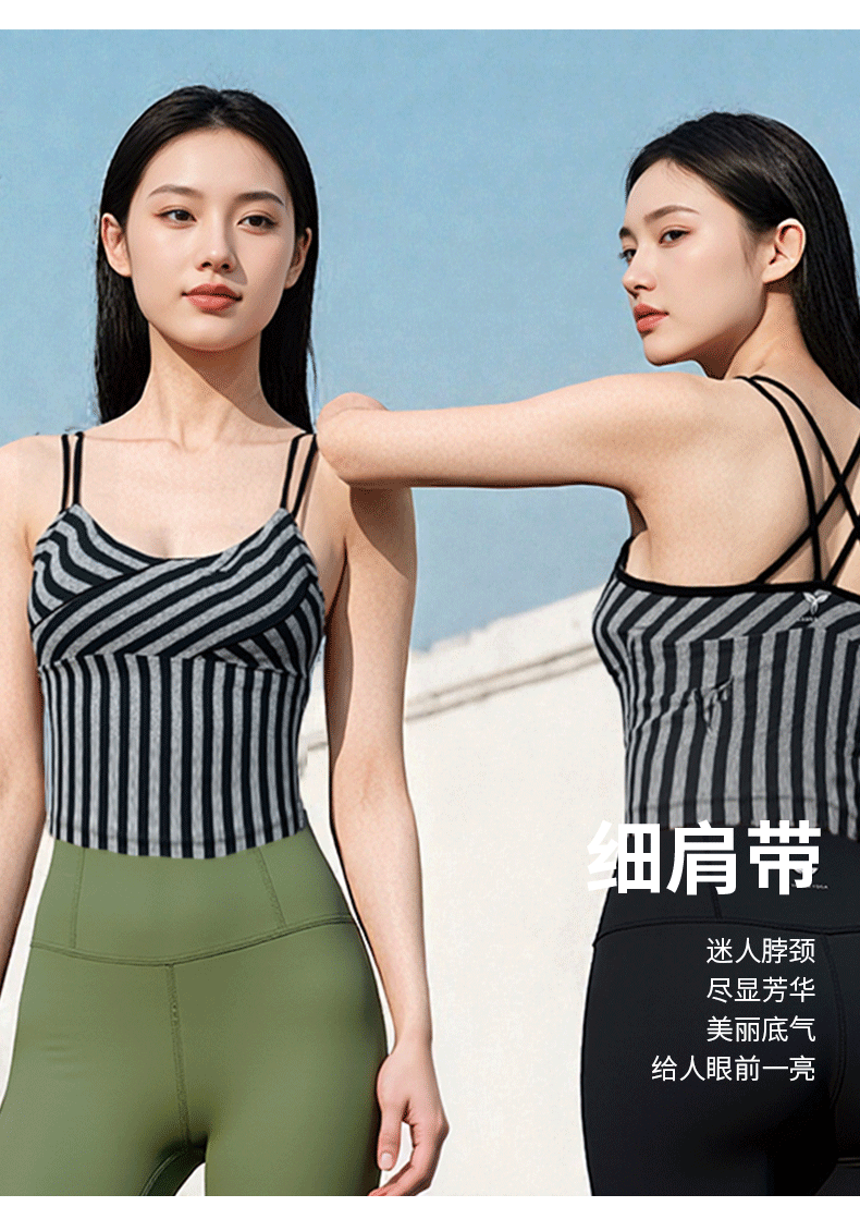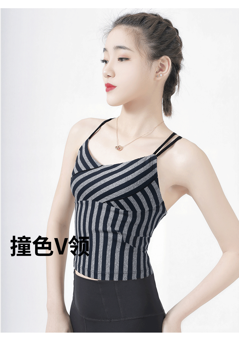 [限量款]悠妍时尚条纹瑜伽背心BX25119 阳离子条纹面料带一片式胸垫