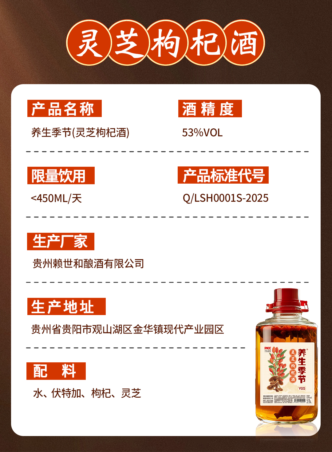养生季节(灵芝枸杞酒)2.5L玻璃坛装,精美礼盒,精选灵芝 枸杞 2味国企原料,科学配比,充分侵泡