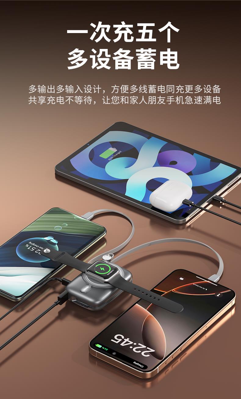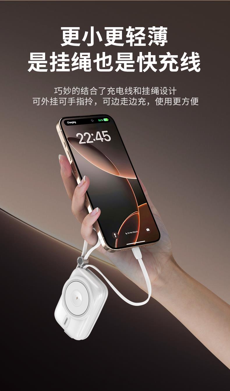 LIUFEIYP三合一磁吸快充充电宝,真3C认证,可登机高铁,小如卡片,苹果全系+安卓可用,可同时充5台!【G】