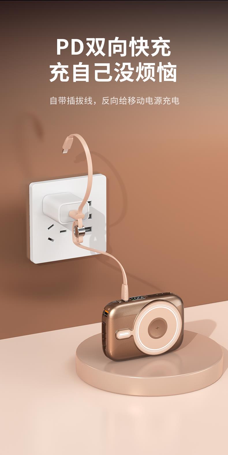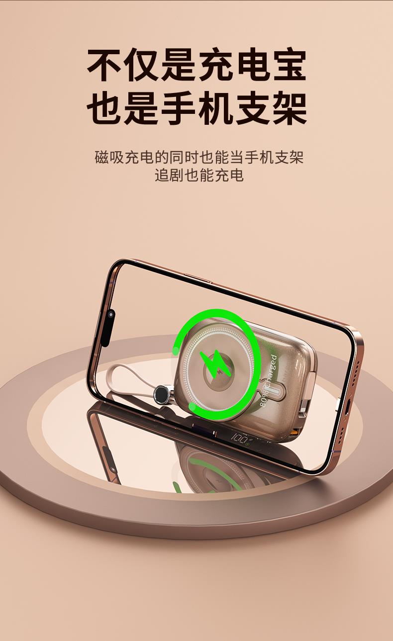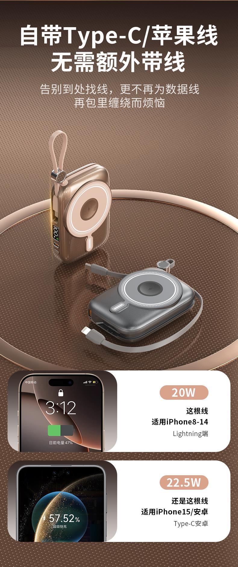产品名称:三合一磁吸无线充移动电源(自带插拔线)