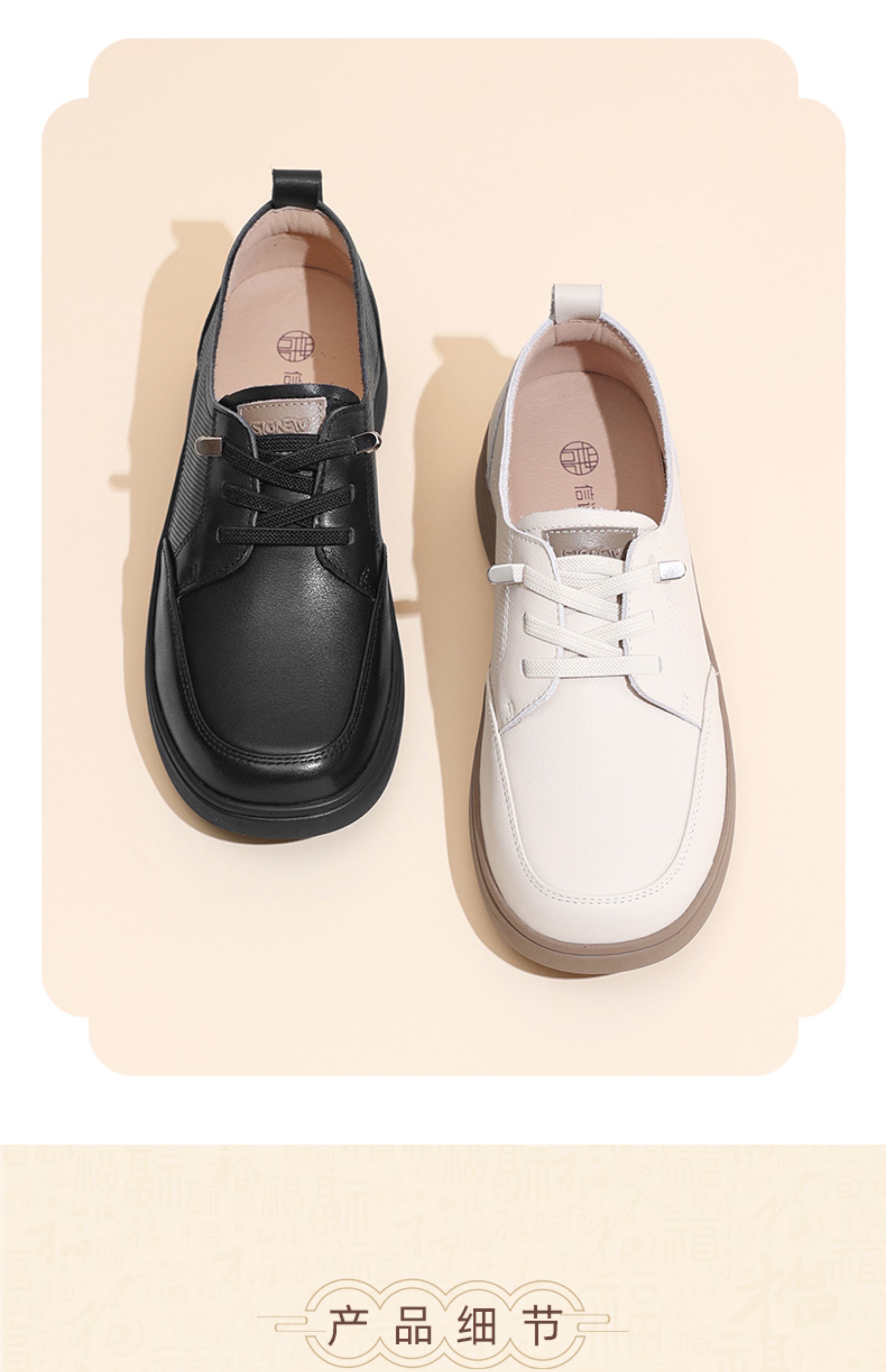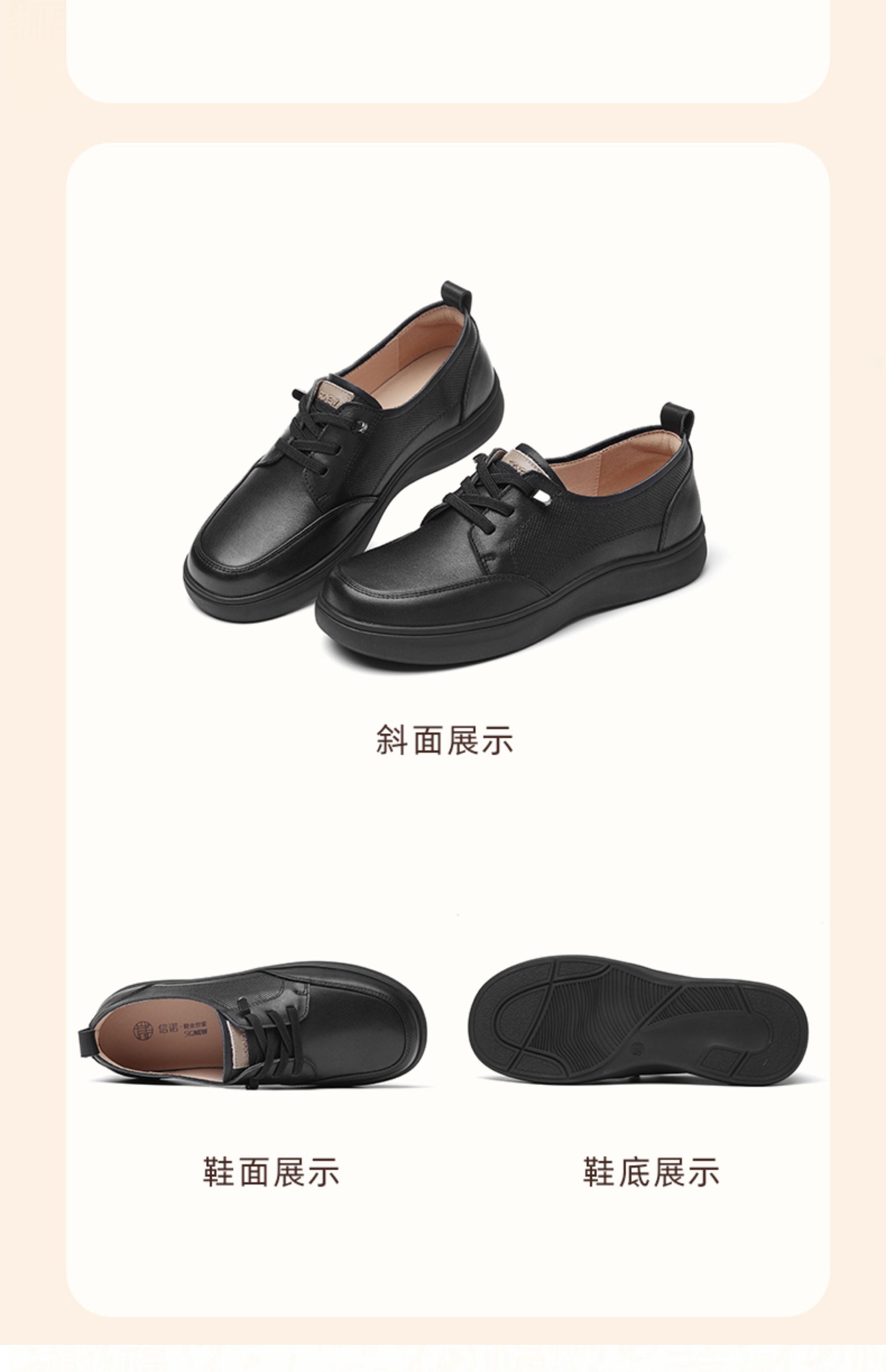 信诺(SiGNEW)真皮妈妈鞋中老年舒适平底单鞋软底大码皮鞋乐福鞋女2025夏季新款5Q3007-1