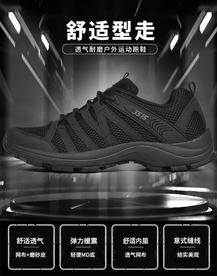 3515强人休闲跑步小黑鞋男舒适透气战术作训鞋户外轻便运动男鞋 TJ-ZZ09X