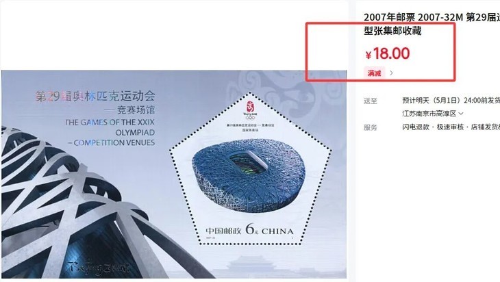 在这张邮票上能看到清晰的鸟巢建筑设计,原价6元的邮票价格,如今在线上也要18元一枚!
