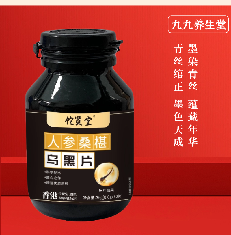【九九坐姿有氧】乌黑片人参桑葚养黑片多种黑色食材制作植物压片糖果 5瓶装 再送一个小梳子