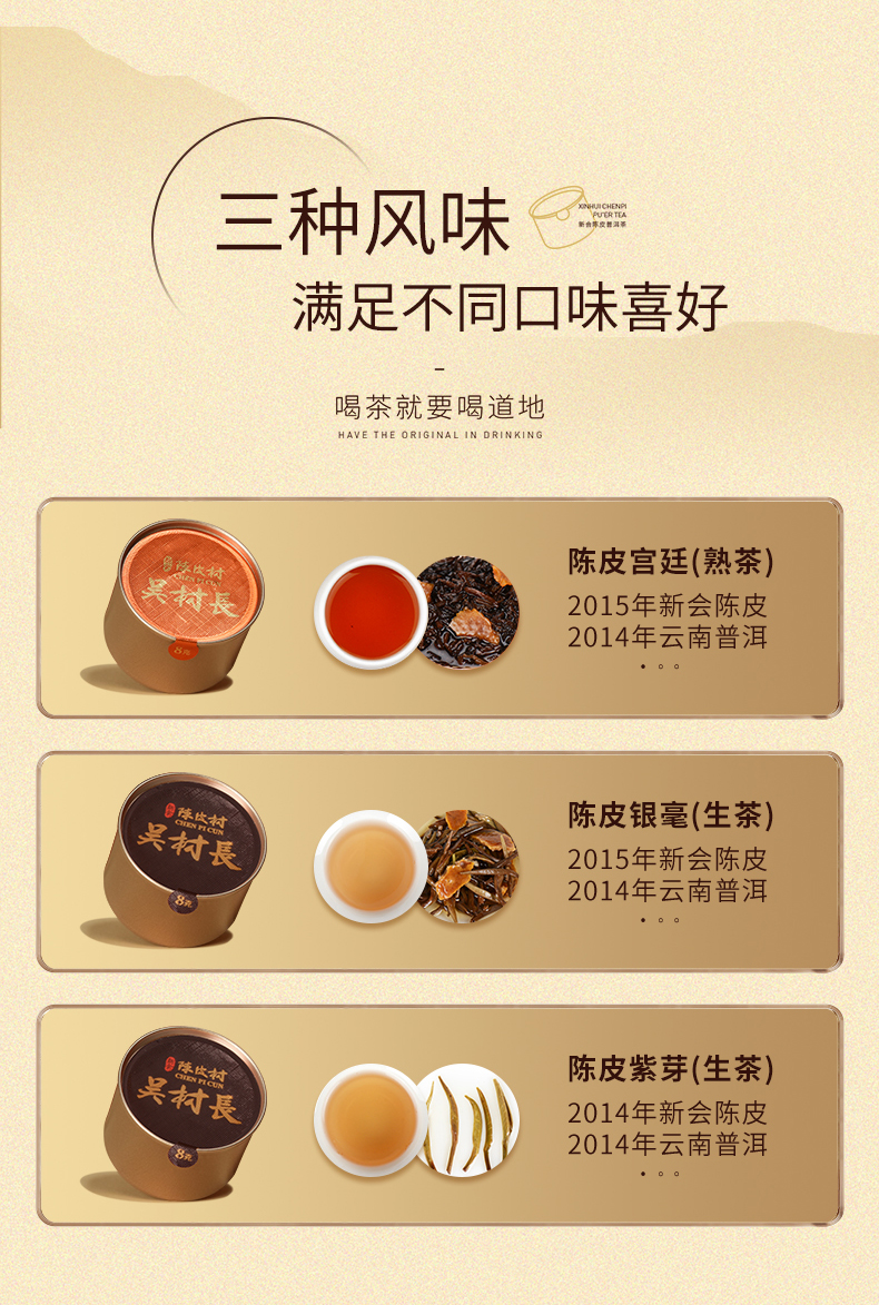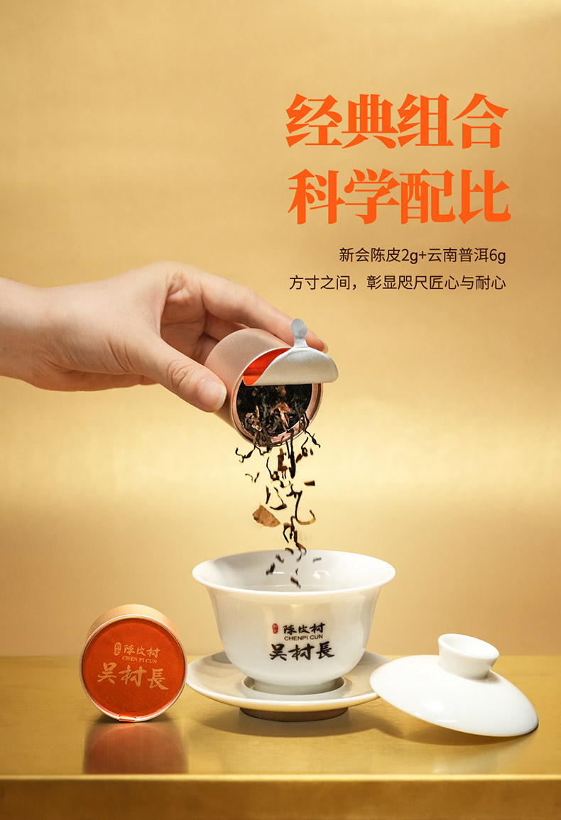 陈皮村吴村长X陈李济联名纪念款陈皮普洱茶96g礼盒装(宫廷/银毫/紫芽)