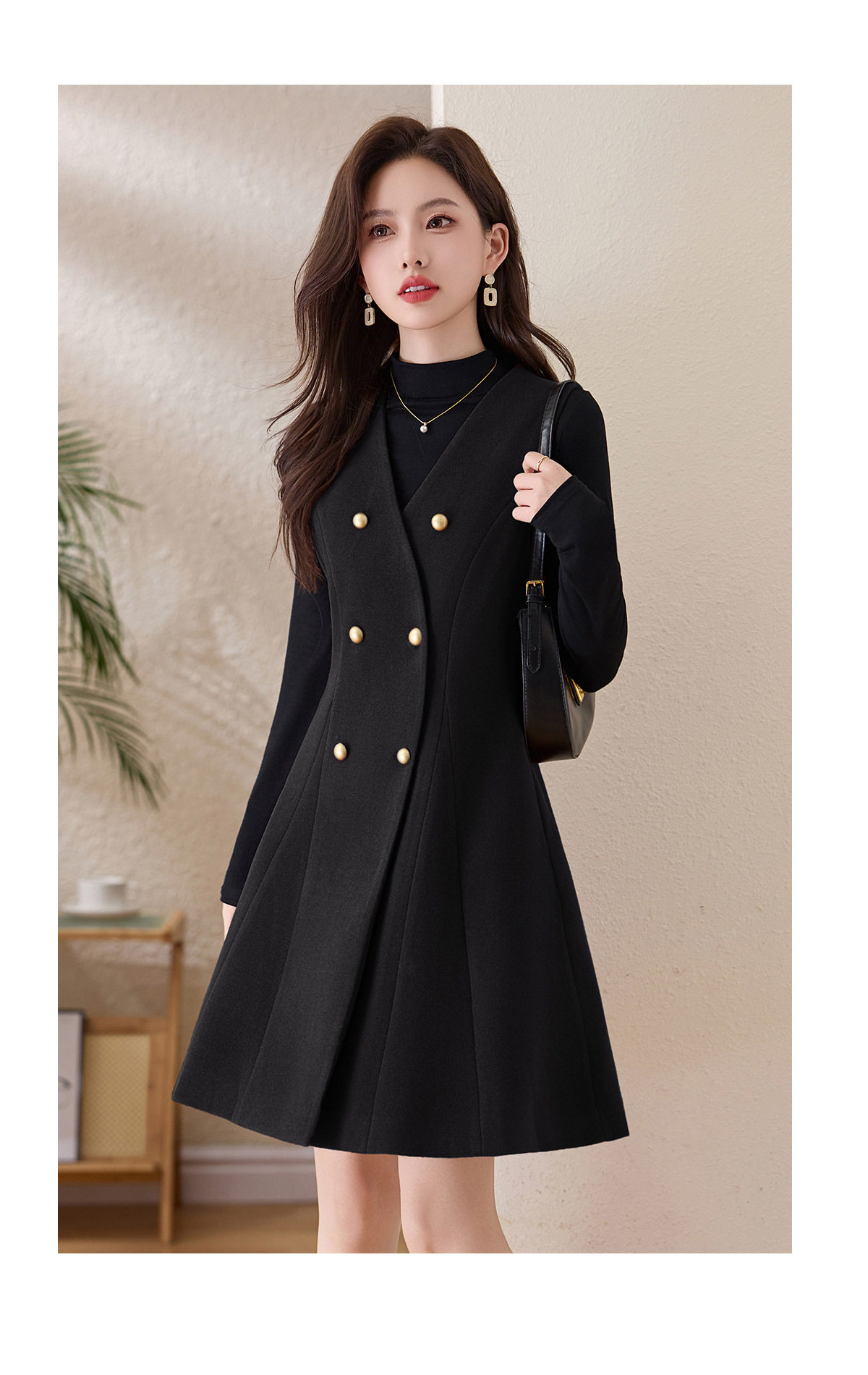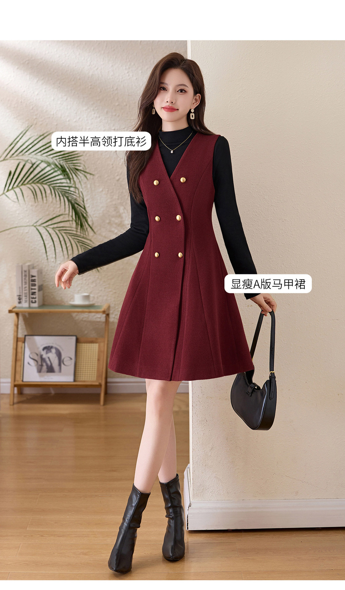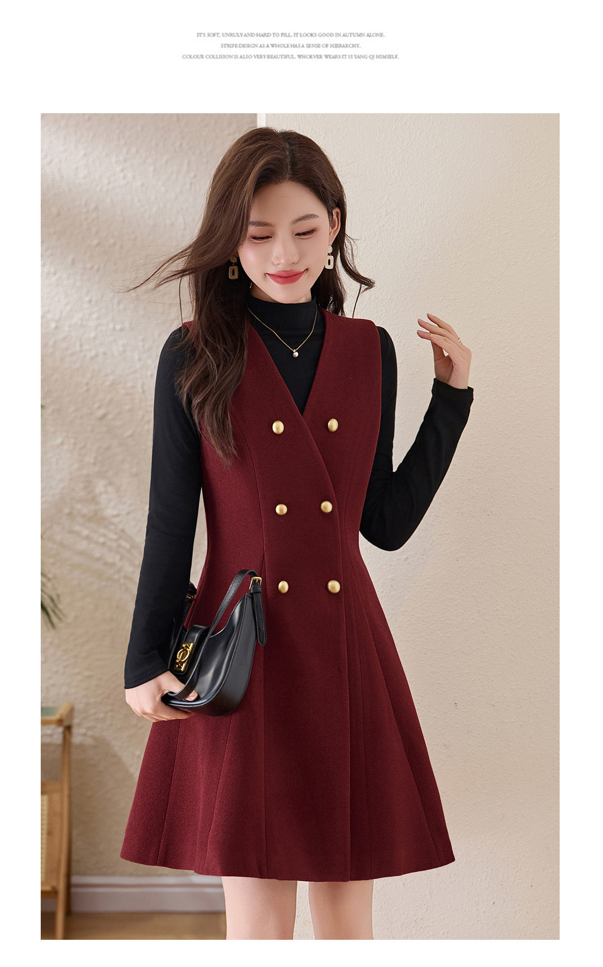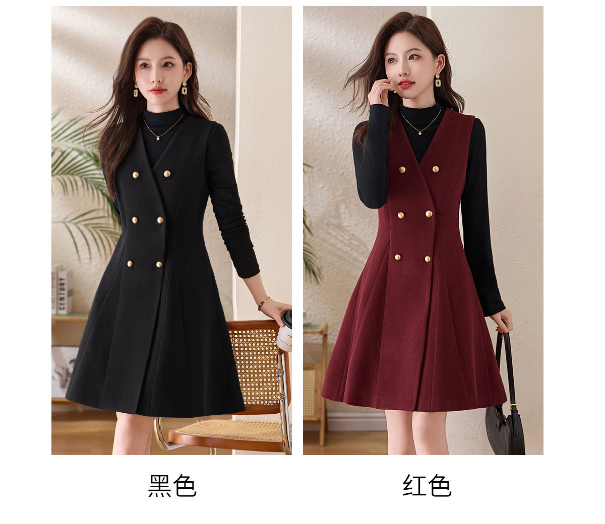 「自」全新升级【铂金会员293/天猫389/差价96】(99112)洛诗琳气质双排扣无袖背心裙+半高领打底上衣两件套