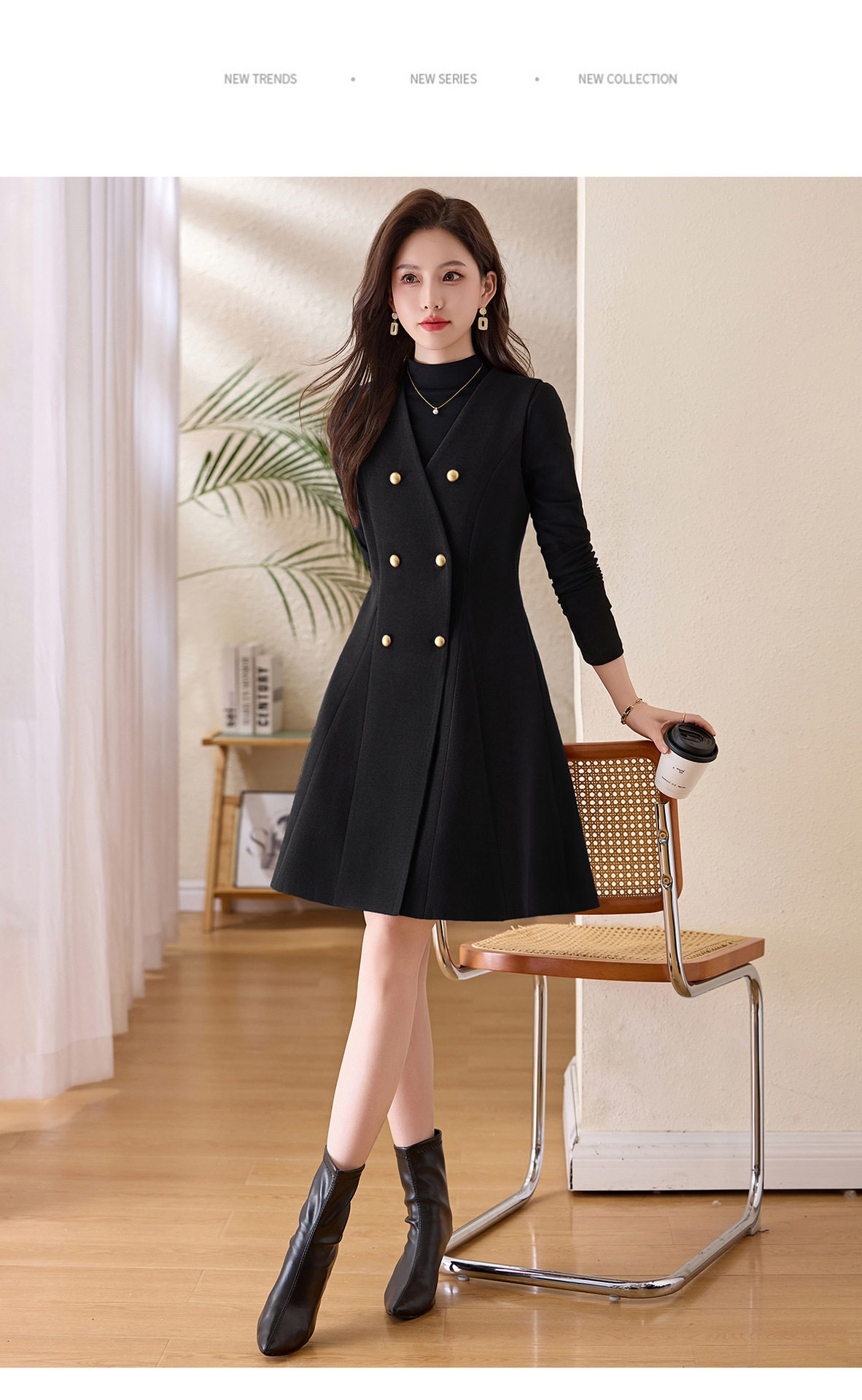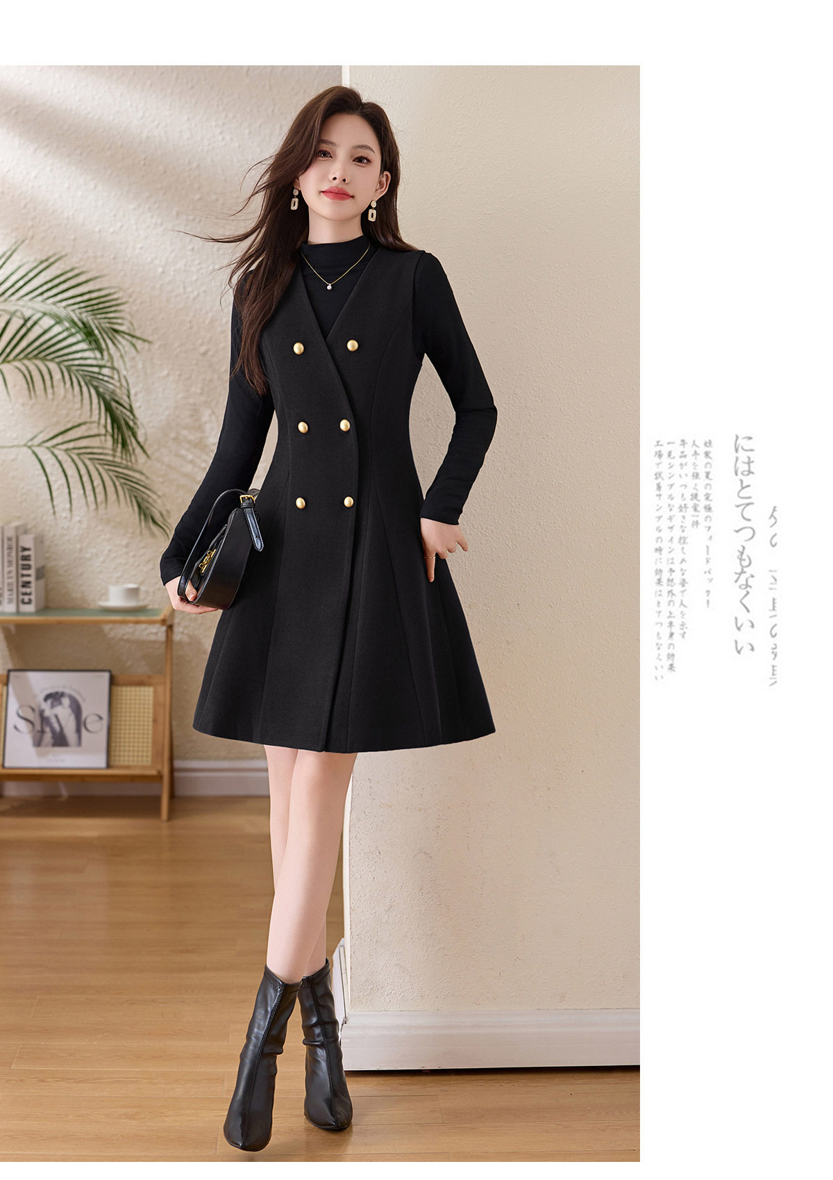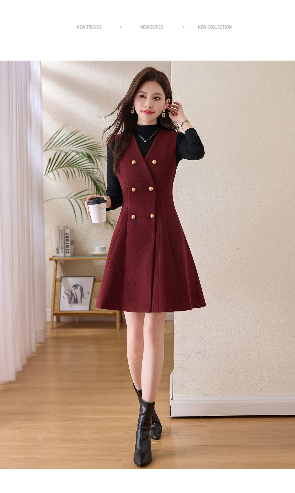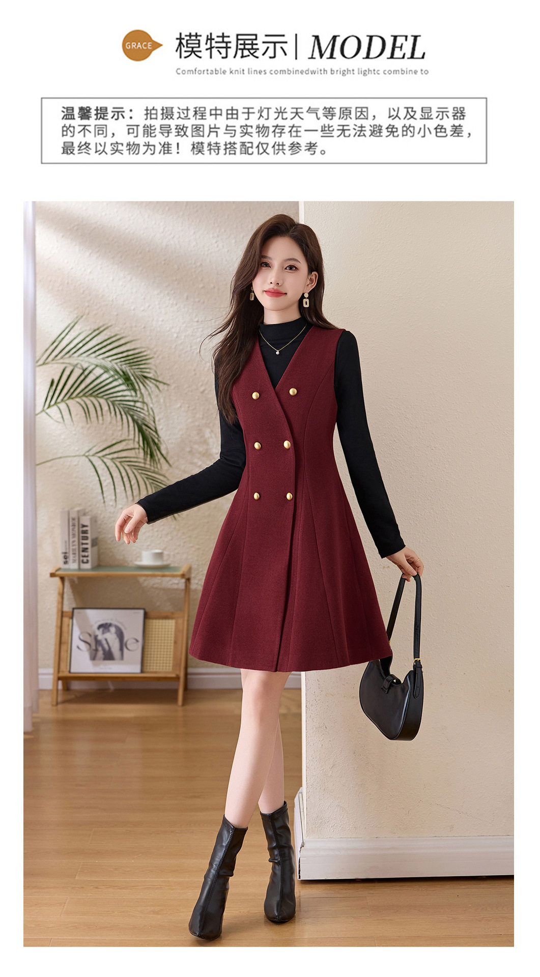 「自」全新升级【铂金会员293/天猫389/差价96】(99112)洛诗琳气质双排扣无袖背心裙+半高领打底上衣两件套