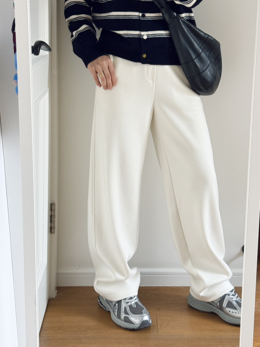 会会自留推荐,真的无敌好穿,垂顺度好!集实穿与时髦度于一身的镰刀裤,无疑会是时髦精们这个秋冬季的挚爱之选。既没有阔腿裤那么宽肥,又比直筒裤更遮肉显瘦。真是微胖女生的福音。遮肉,显腿直,谁穿谁知道。纯色简约的风格,温柔随性,羊毛之地,更适合我们怕冷星人们。甄选优质毛呢面料,轻软绵密,穿着舒适,上身挺括有型,最重要的实它的保暖性好,南方的姐妹,免去大家冬天穿秋裤显臃肿的烦恼,内力绒面料,贴腿穿也亲肤不扎,给你的肌肤营造安全舒适的环境,完美hold住ren一场合
