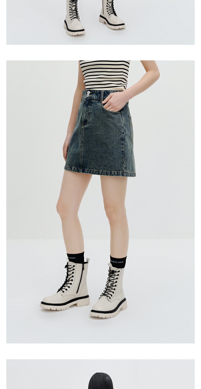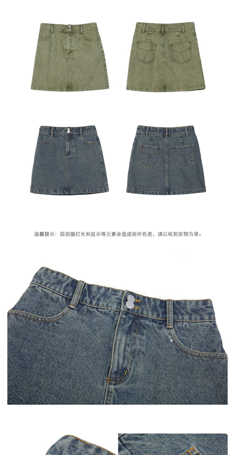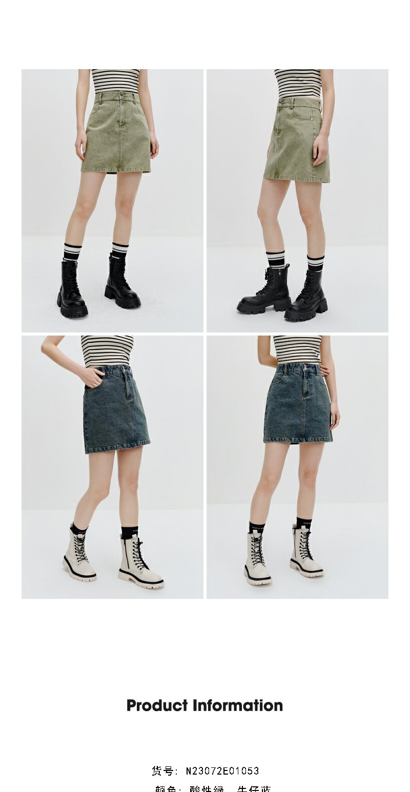NEELLY纳俪商场同款高腰两粒扣牛仔半身裙女百搭包臀A字裙短裙