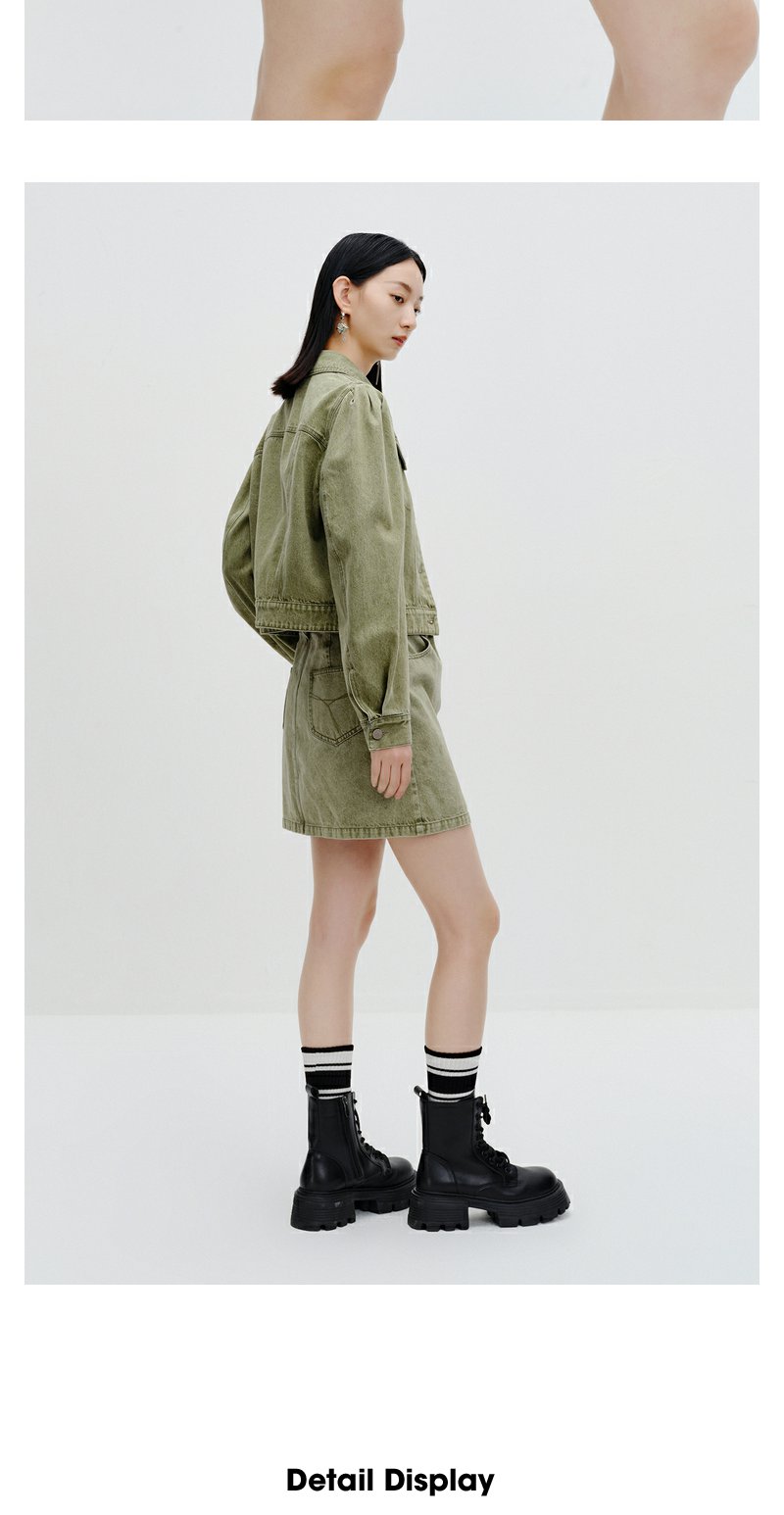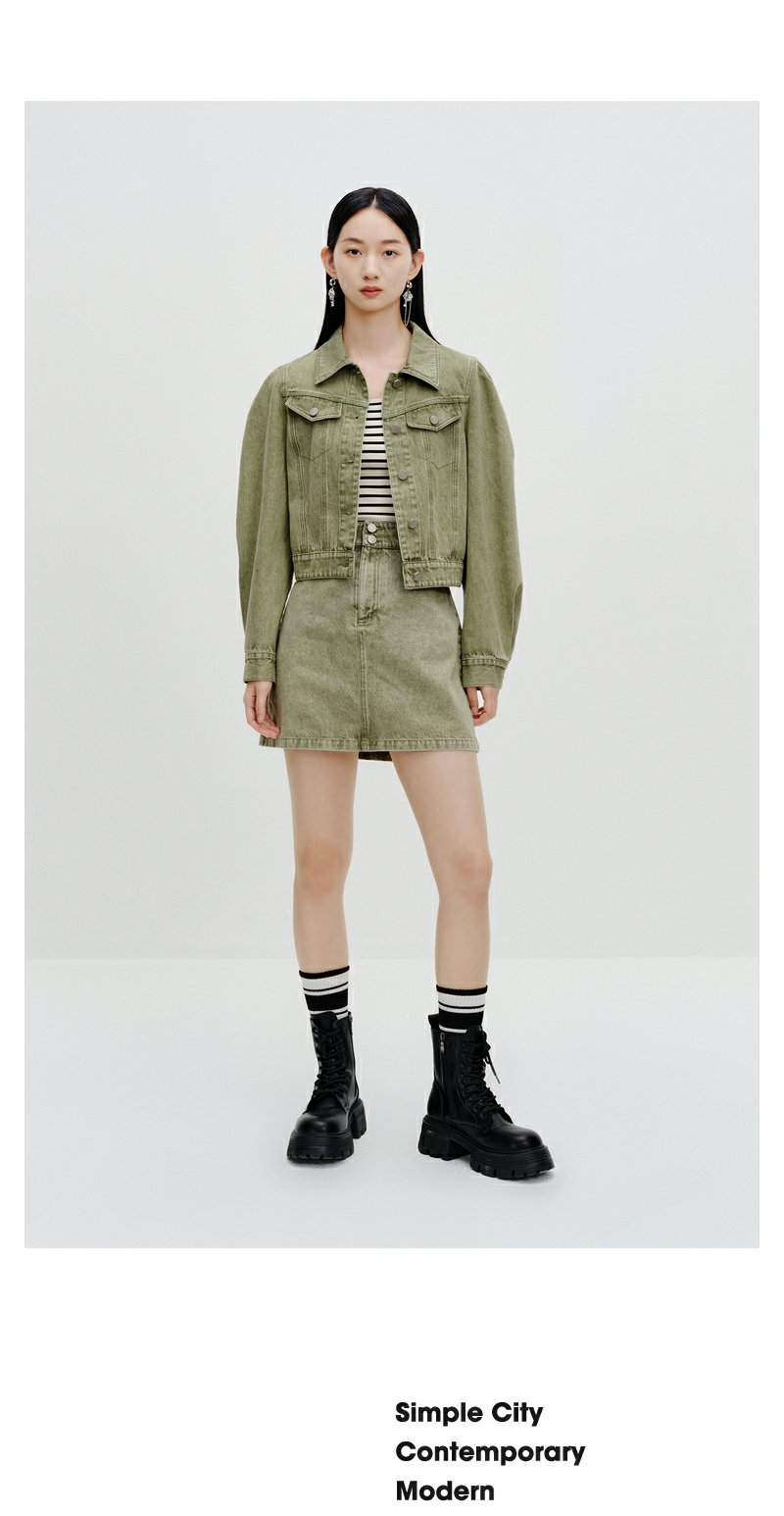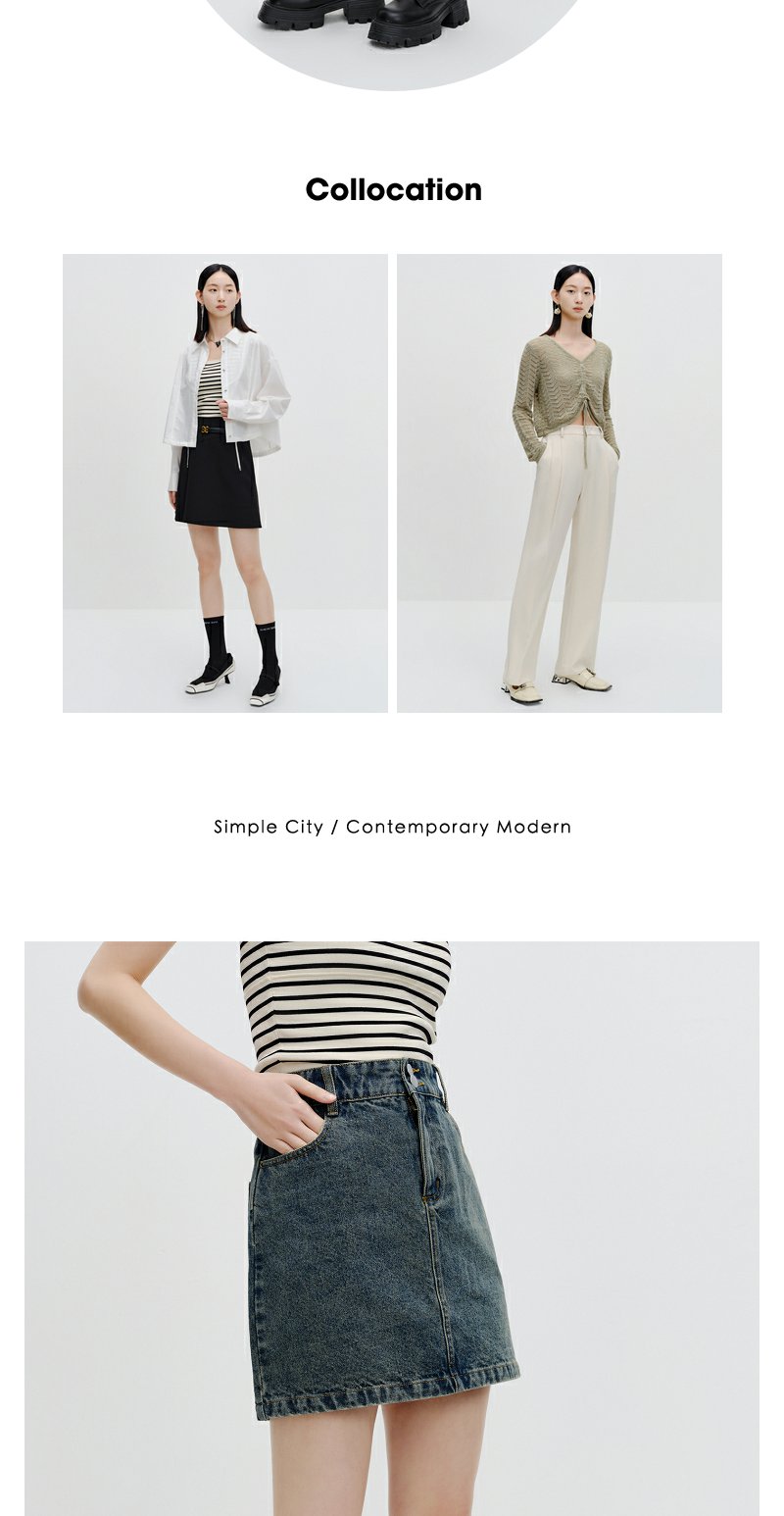 NEELLY纳俪商场同款高腰两粒扣牛仔半身裙女百搭包臀A字裙短裙