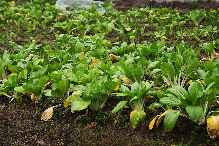 亚海农场的阿姨正在种无公害大青菜,这种青菜就是专门用来做腌青菜的。