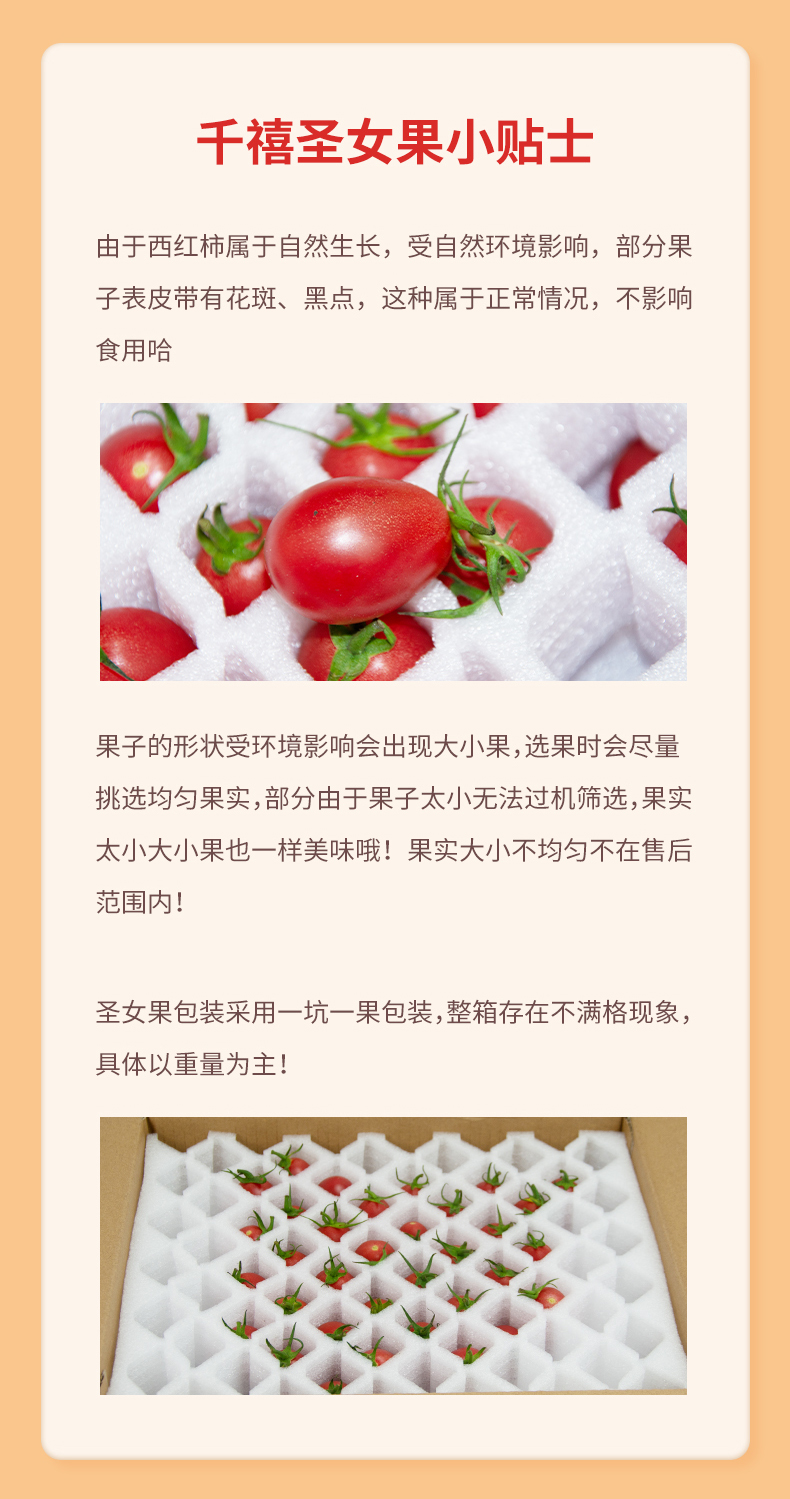 2.随着气温回升,千禧果会出现黄帽子现象,在树上挂着的果子就有黄帽子的,并非摘下来后时间长变黄的,这是自然现象,并非果子不新鲜,介意者慎拍