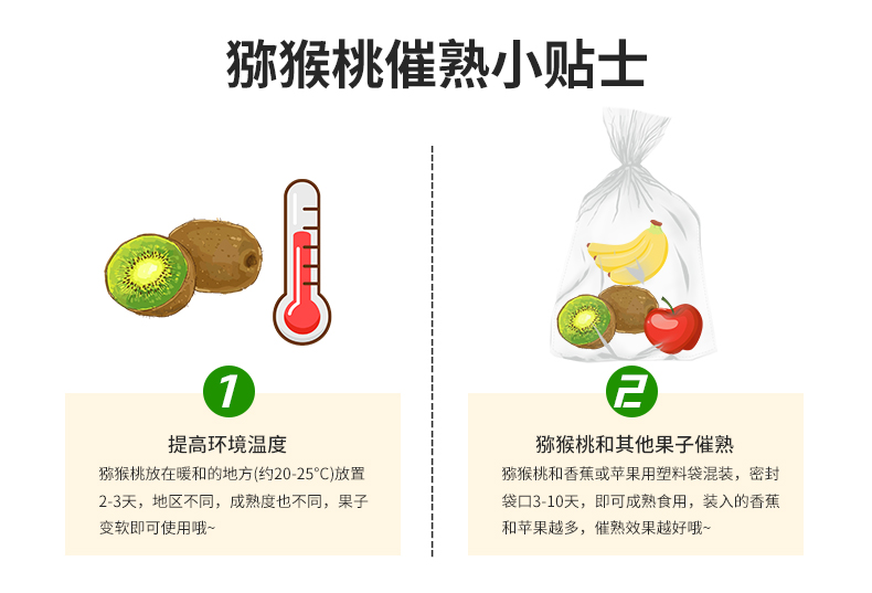 关于催熟方法:将猕猴桃放置在塑料袋内,扎紧袋口,放置在暖和的地方,越热乎熟的的越快 2.猕猴挑和香蕉或者苹果用塑料袋装着,密封3-10天。微软即成熟就可以吃了。