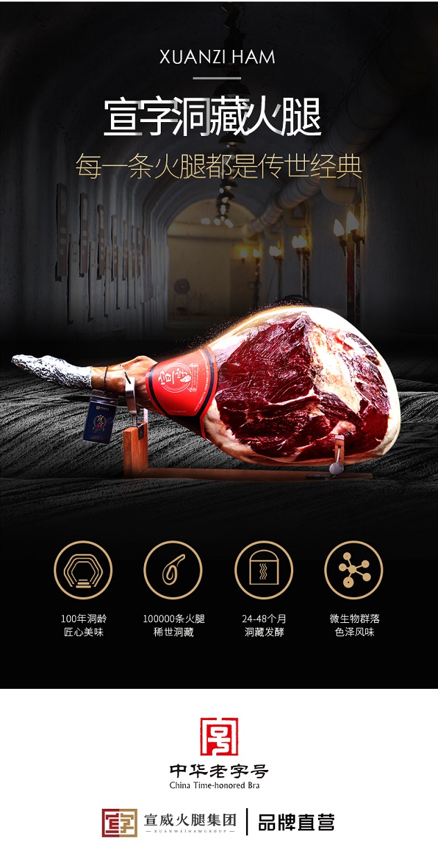 【中华老字号】正宗宣威火腿 宣字牌火腿块 肥瘦块300g/500g 煲汤蒸炒皆宜 云南黑猪后腿肉腊肉美食特产