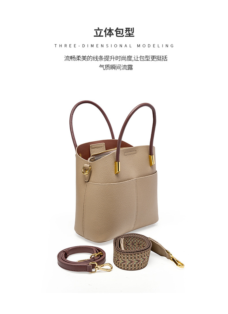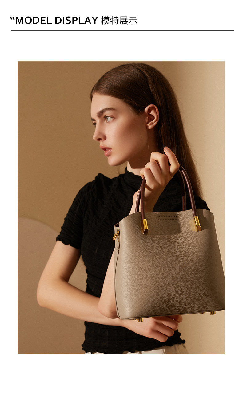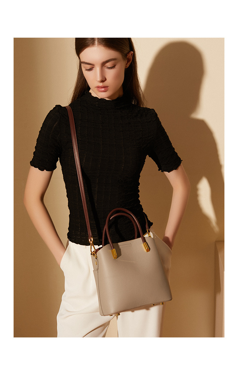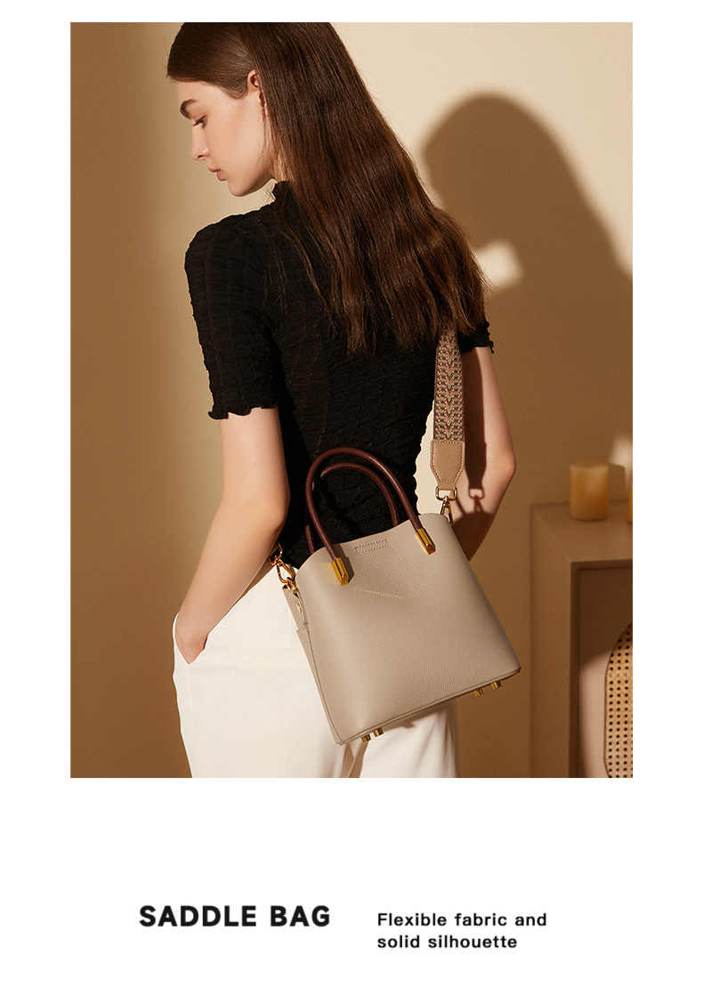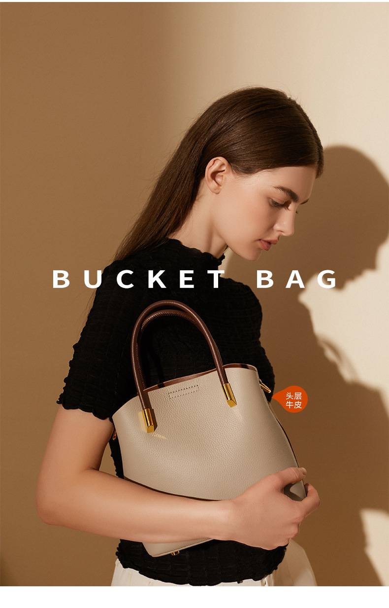 丁摩小众真皮水桶包女百搭洋气手提包高级感休闲斜挎包牛皮包5ZF-2235
