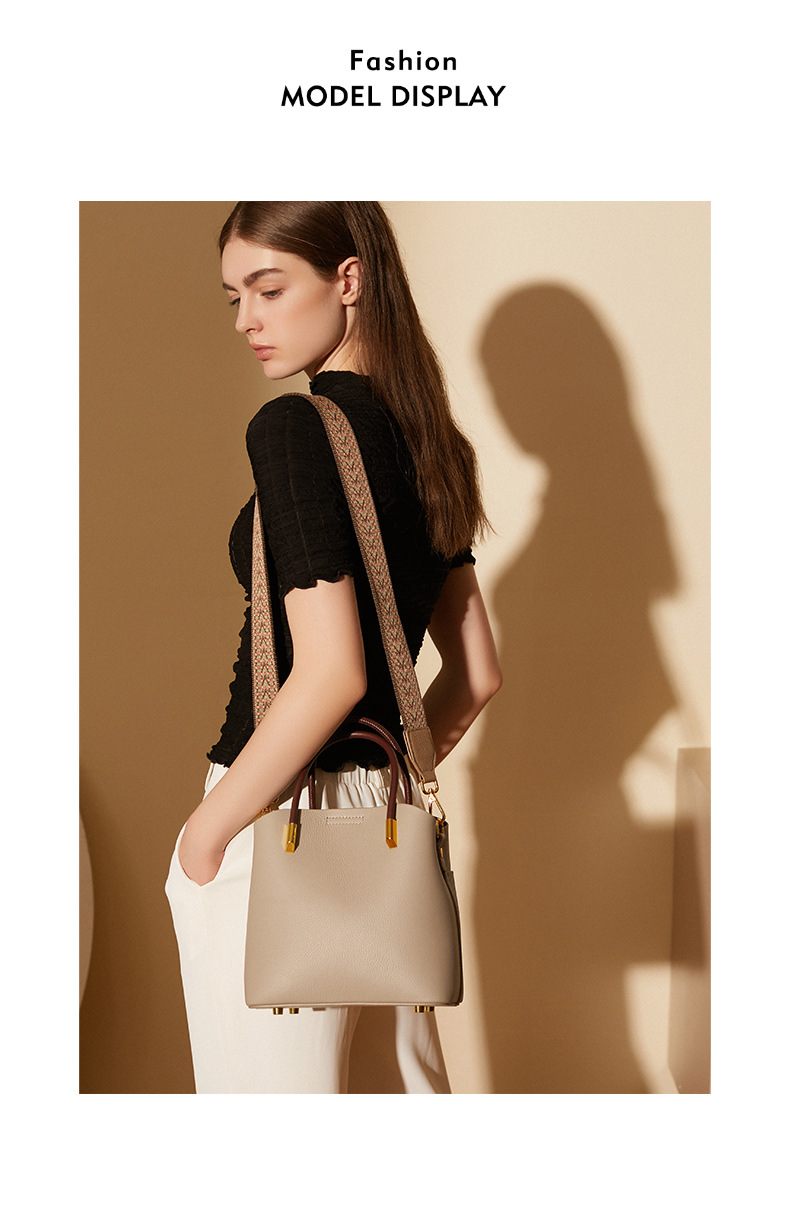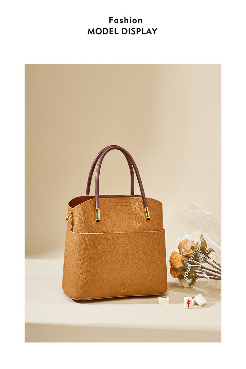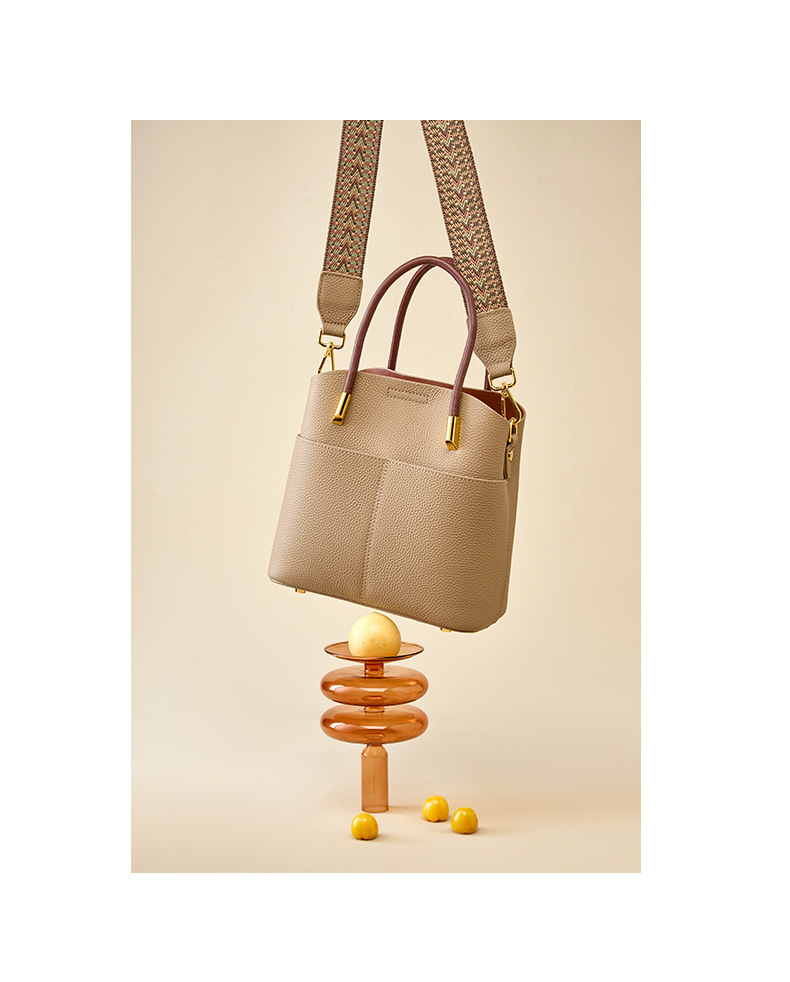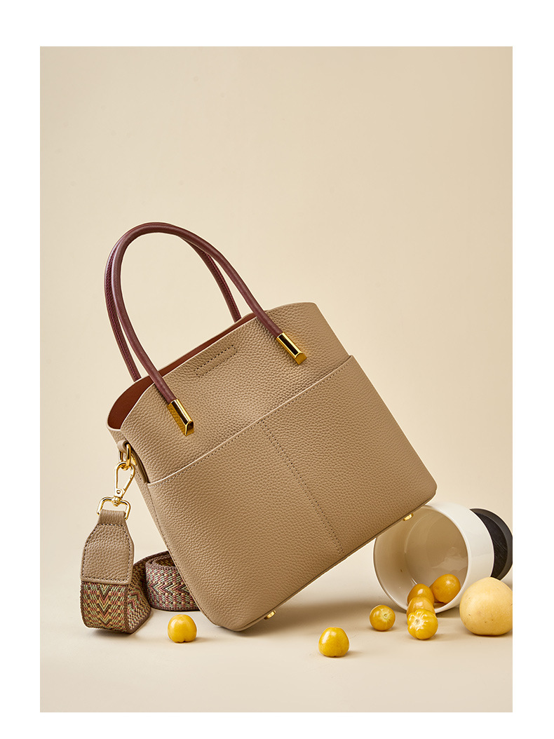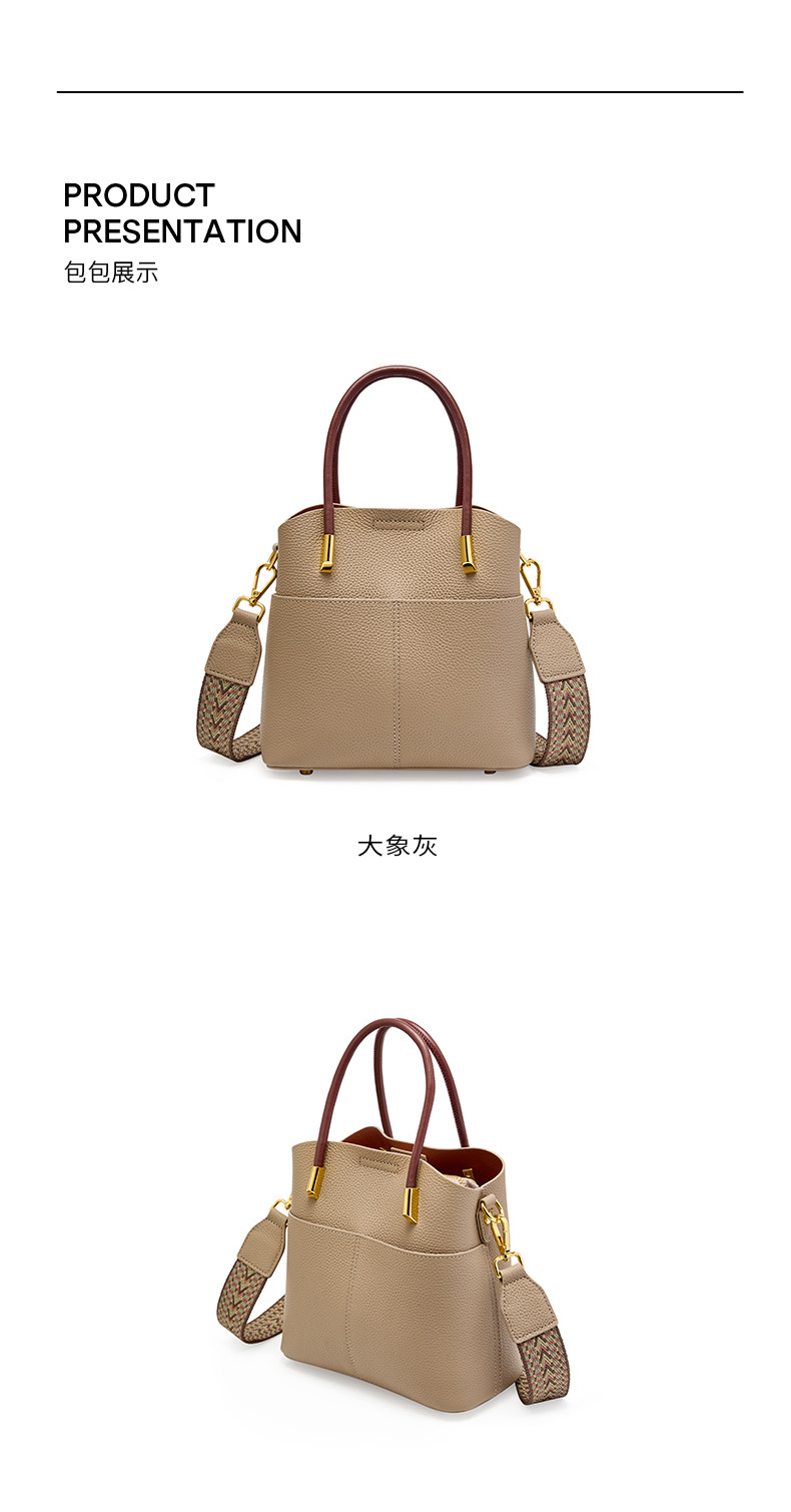 丁摩小众真皮水桶包女百搭洋气手提包高级感休闲斜挎包牛皮包5ZF-2235