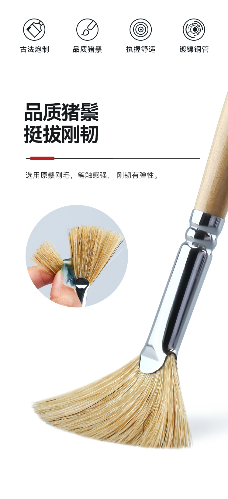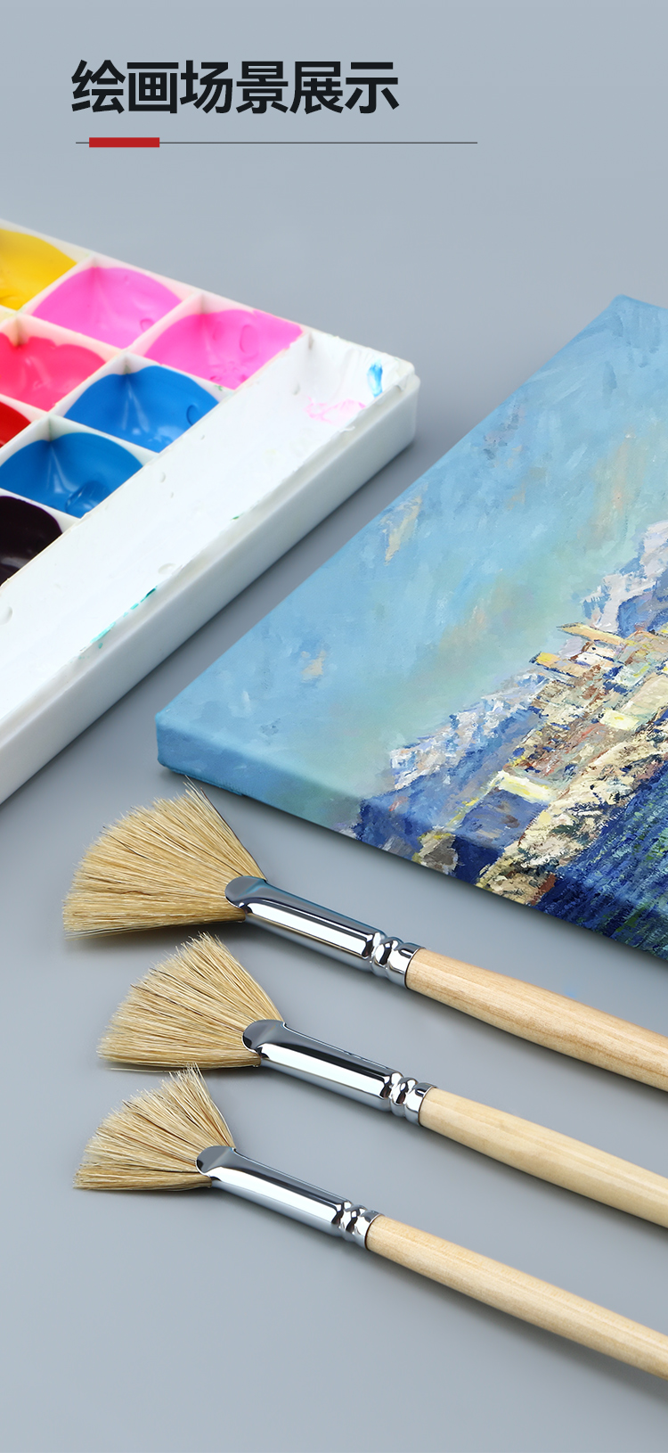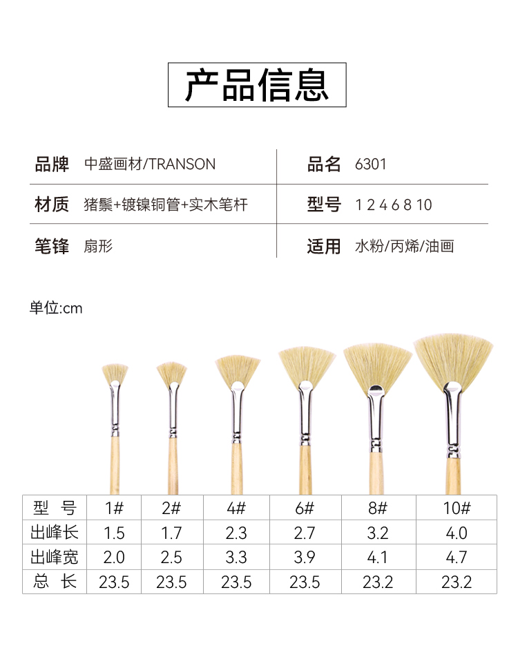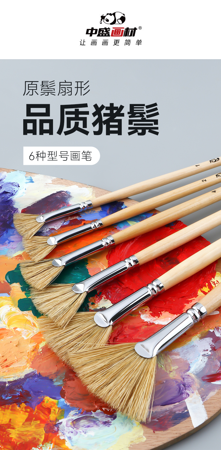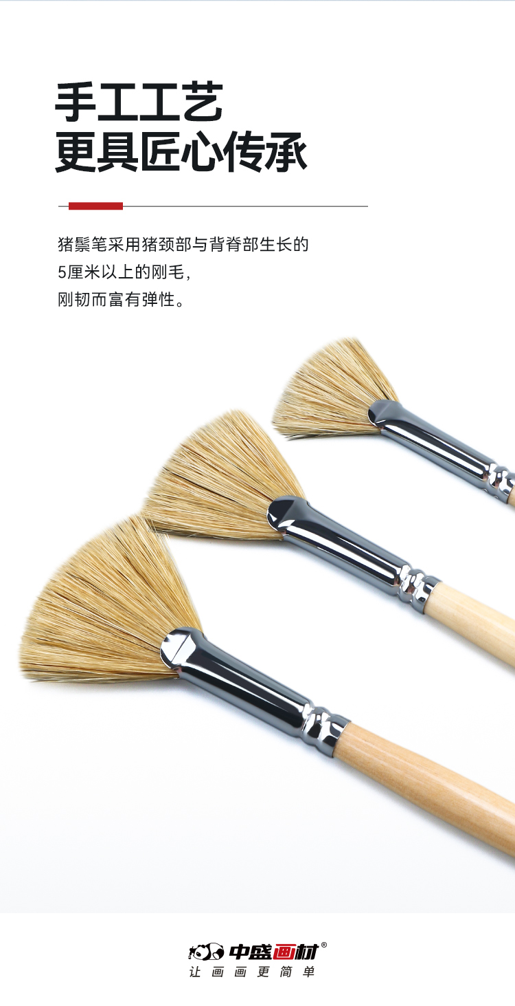 中盛画材 6301原猪鬃扇形笔扇形刷 油画笔/水粉笔/水彩笔单支