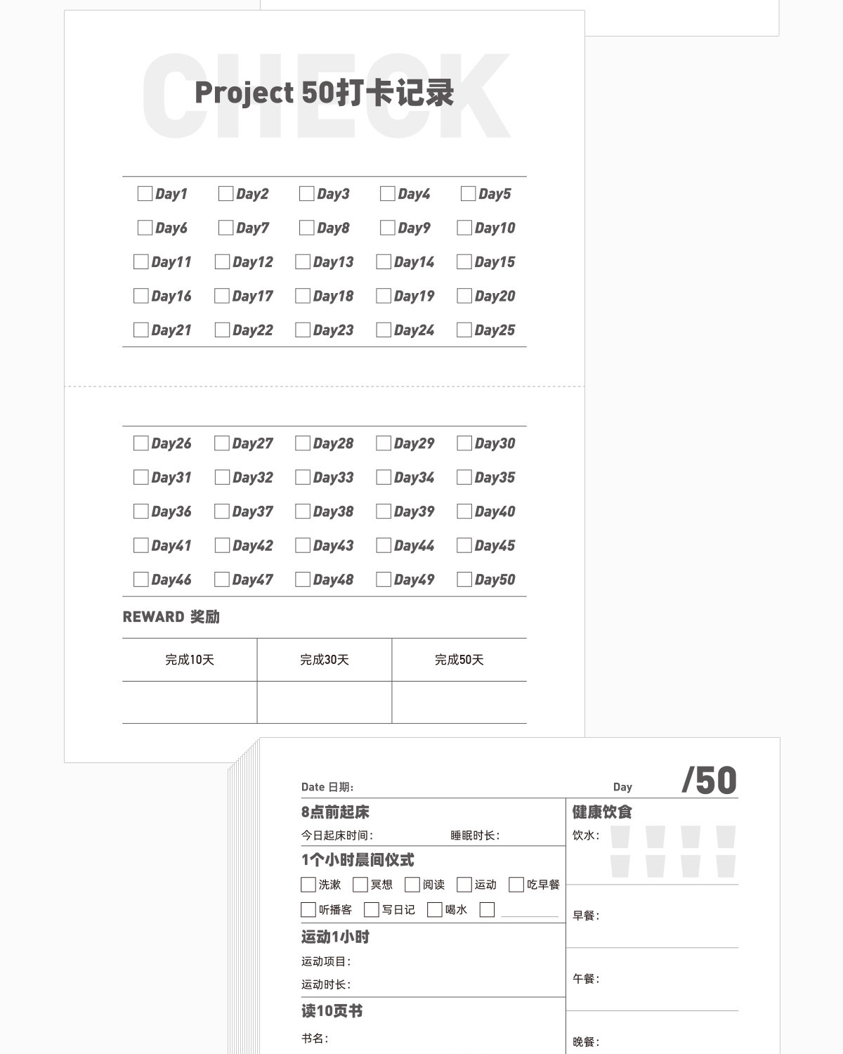 趁早Project50自律打卡本50天重启人生计划本时间管理随身便携记录便签本