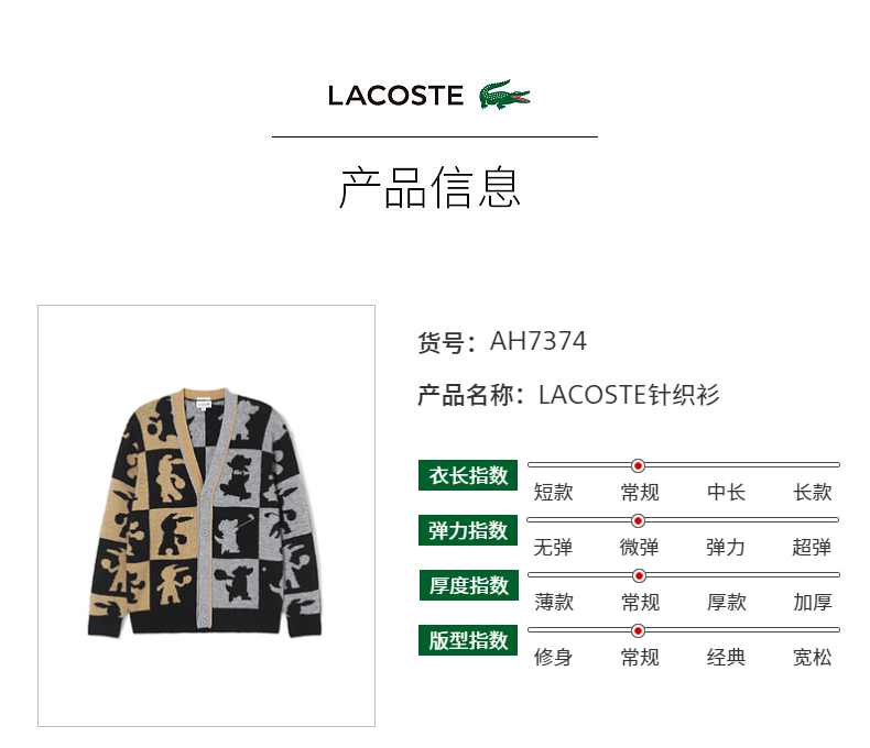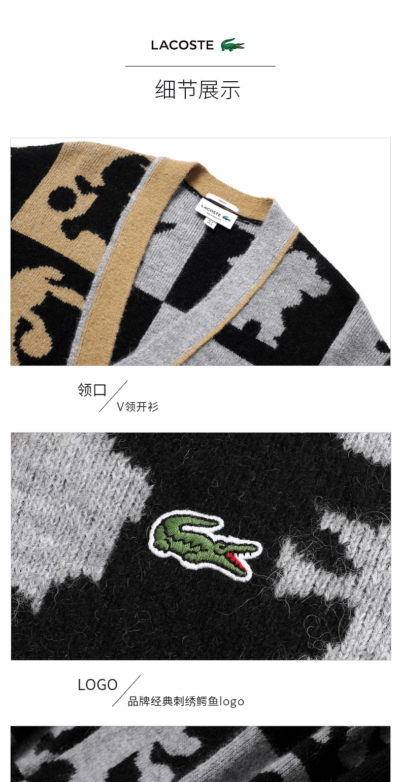 【海南专供价】Lacoste法国鳄鱼情侣款美拉德穿搭图案印花拼色V领针织开衫AH7374-98