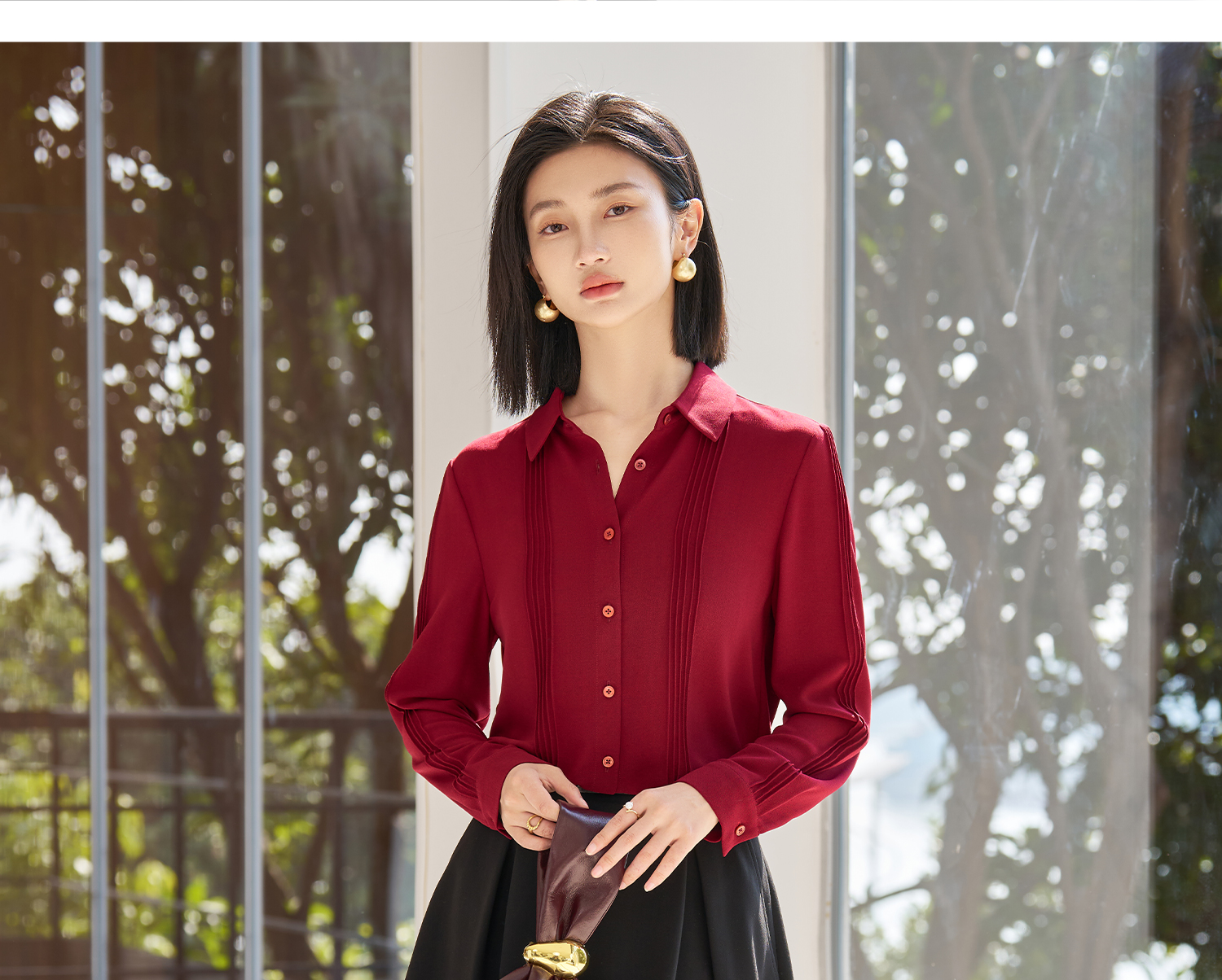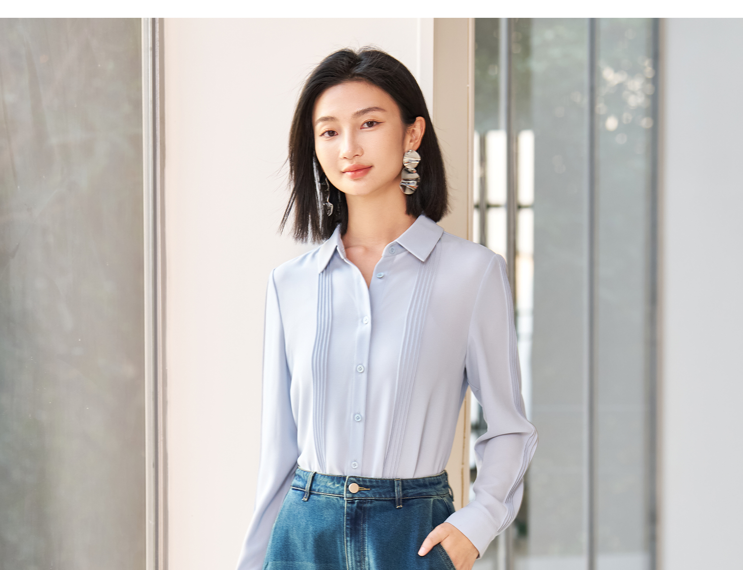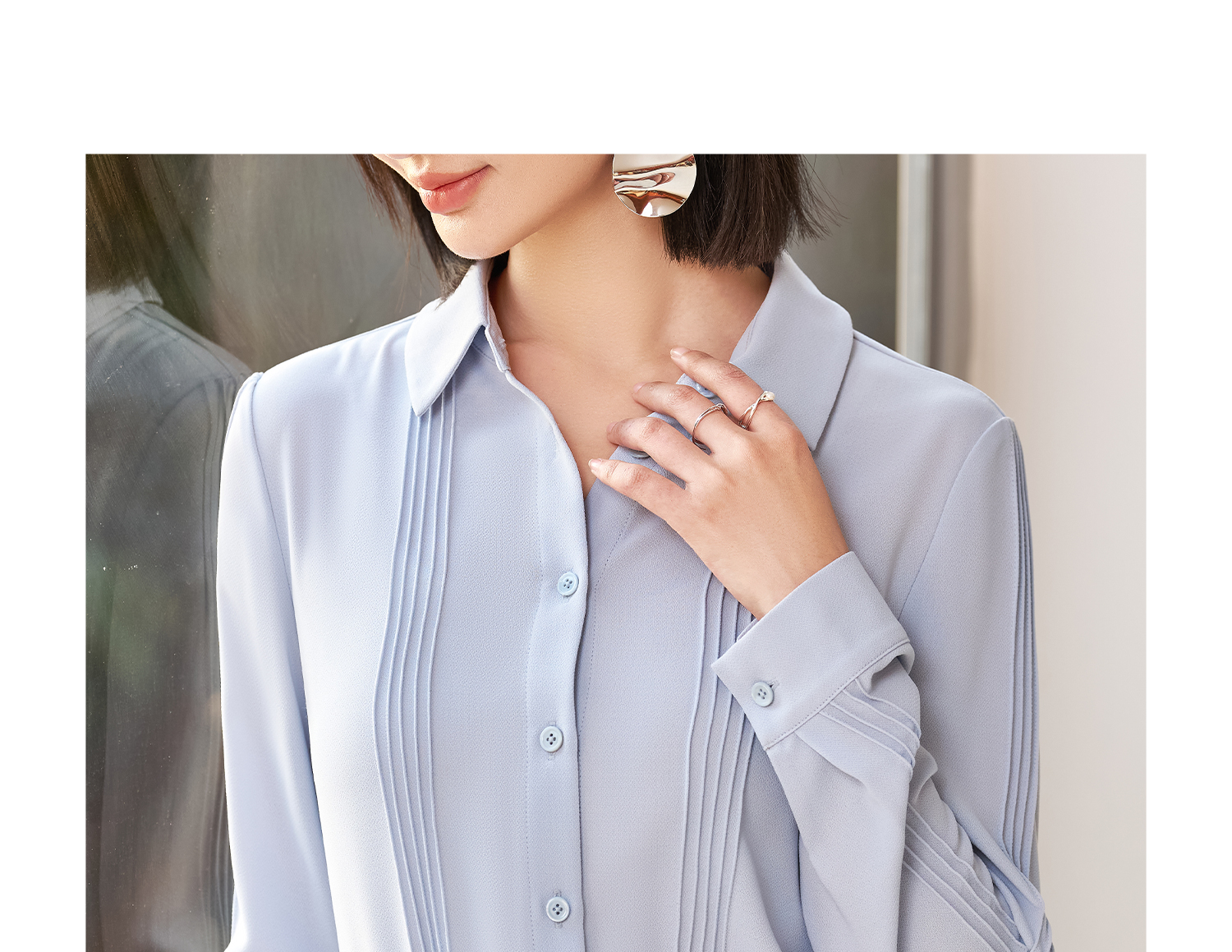 「风琴褶皱」压褶衬衫 前幅立体压褶 既保留了职场的专业度 又增添了设计感 “百搭不出错” 的气质单品 米思阳2026春季新款时尚轻奢衬衫简约压褶设计感休闲上衣女款5177