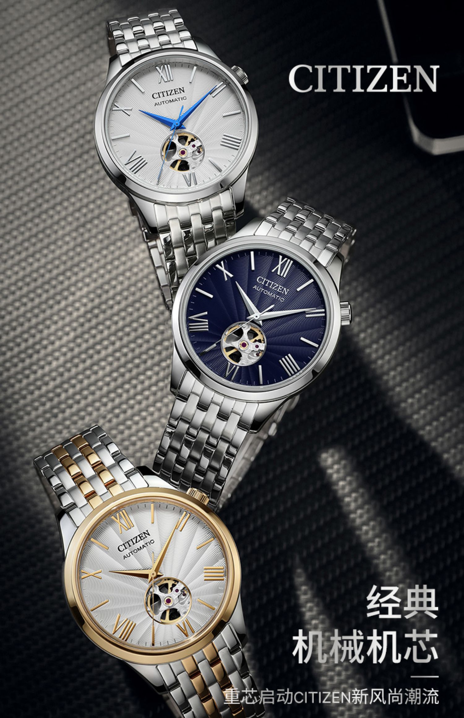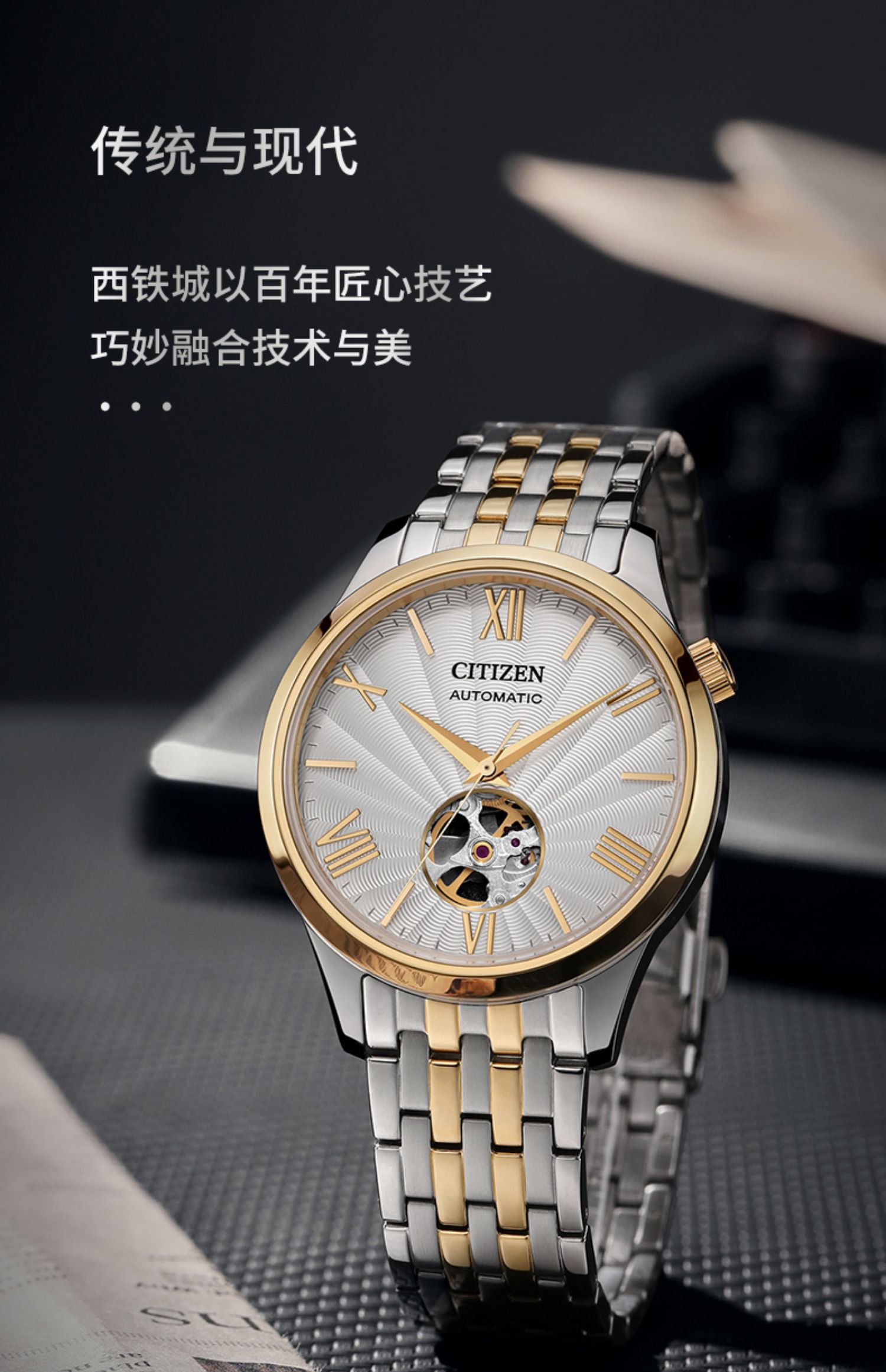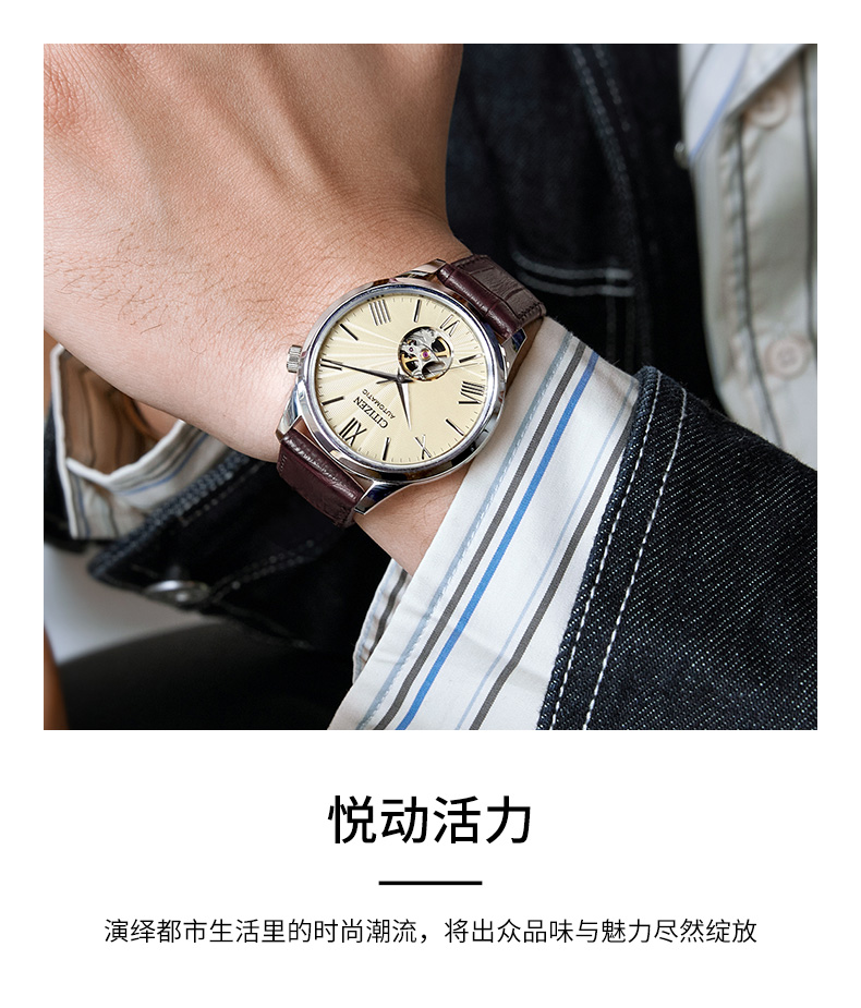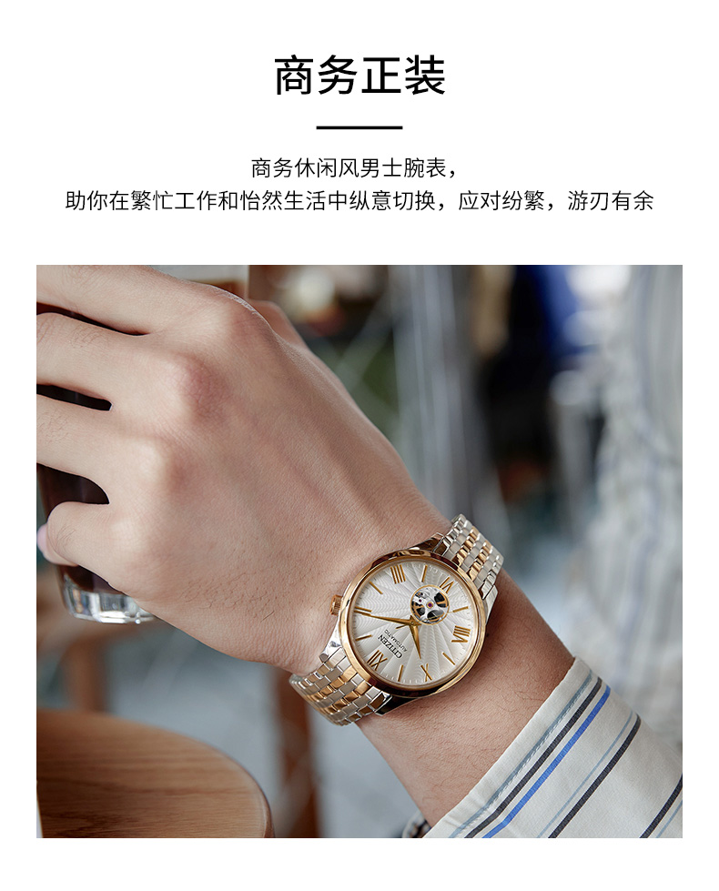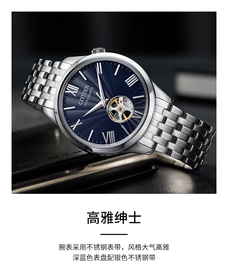 西铁城/CITIZEN经典商务休闲机械透底皮带男表NH9130-17A