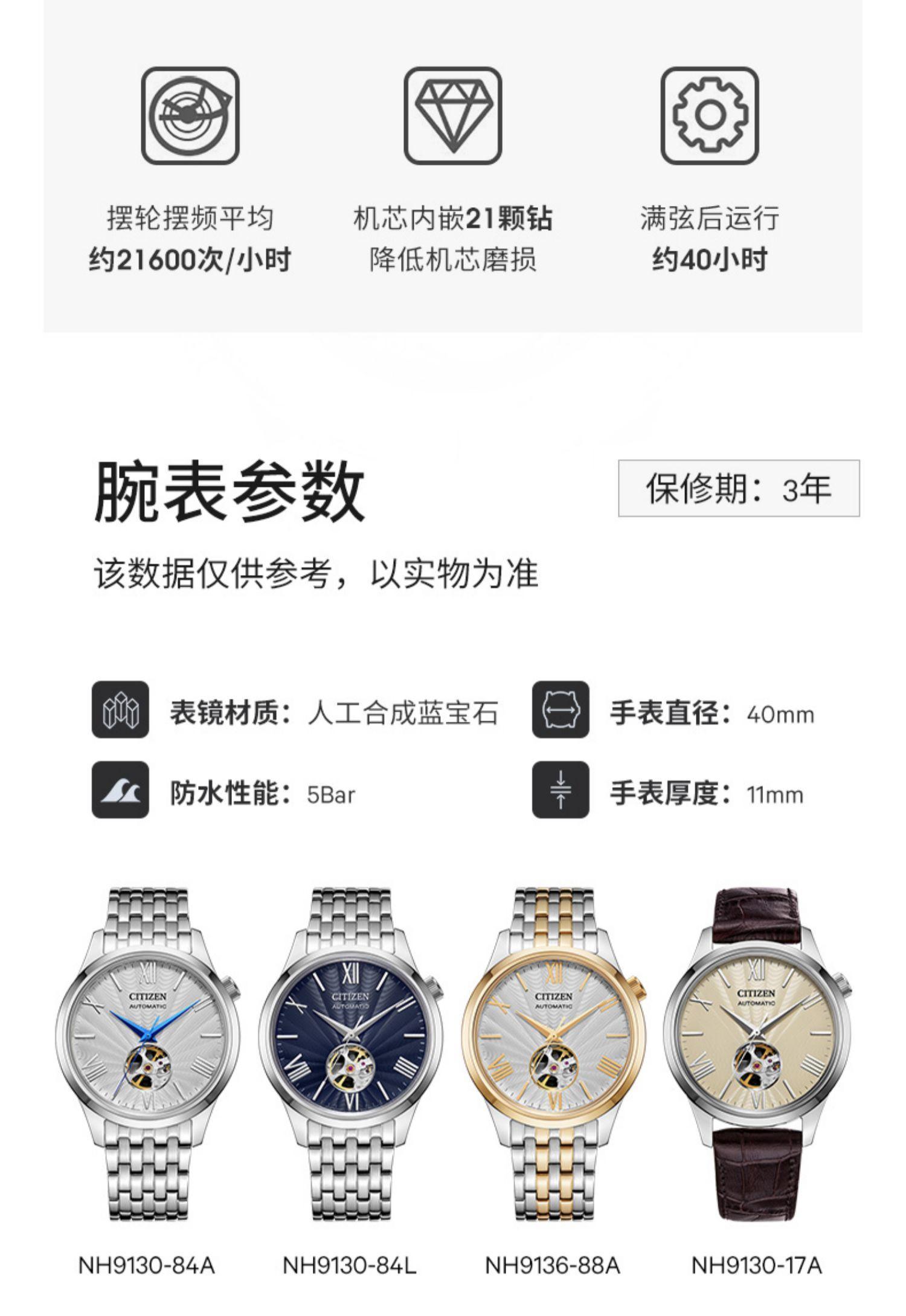 - 本店是西铁城品牌正式授权注册的公众号及小程序:西铁城表新零售旗舰店(品牌绿R认证),网络销售商授权ID号12593,执行西铁城各项线购保障条款:七天无理由退货/官方正品全国联保/3+2共五年免费服务