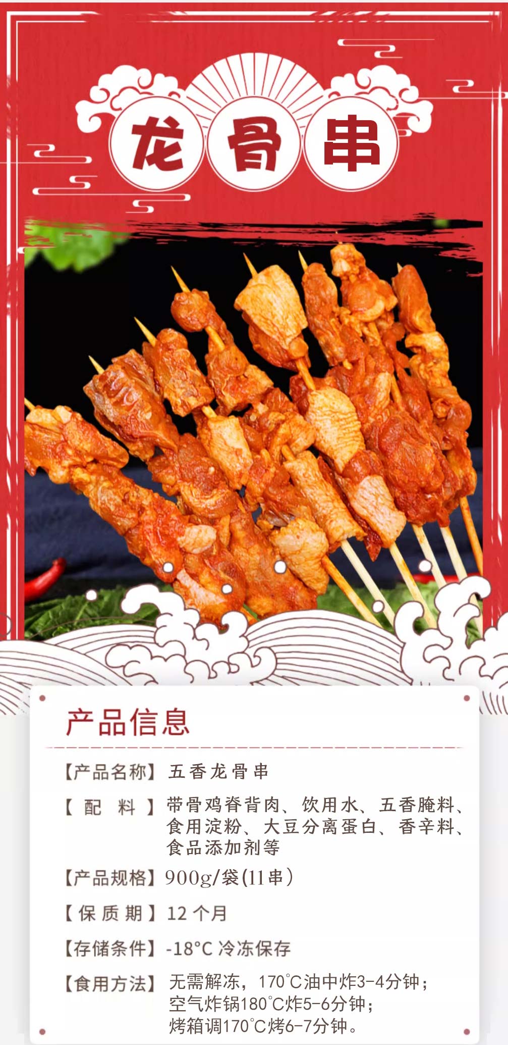 大红德邻五香龙骨串 900g/袋(11串) 8袋/件