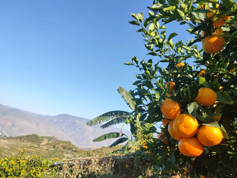 沃柑⽣⻓的⼲热河⾕⾼⼭环境,地处中国最为⼲热的红河⾕核⼼区,⽇照时间⻓,海拔400 〜1260m,天然⽴体⽓候不可模仿复制。