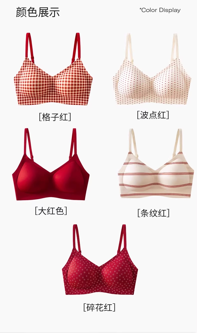 【喜提红运❗️一穿聚拢】本命年新年红色条纹碎花幸运文胸少女内衣提拉防下垂透气舒适内衣。jc