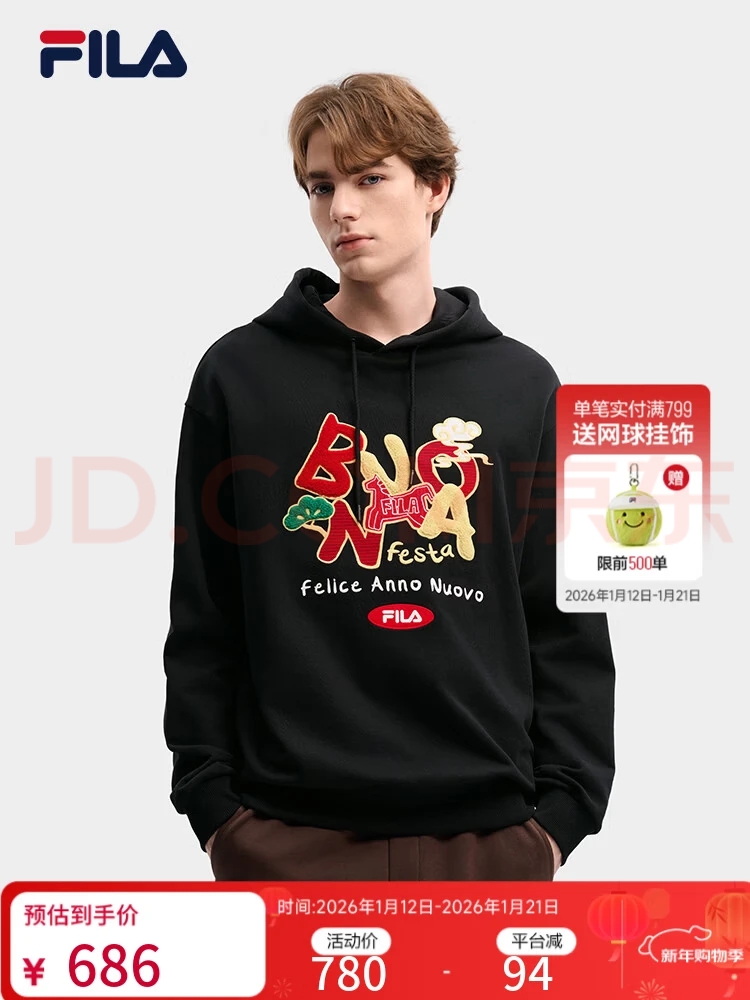 FILA马上起飞斐乐男女情侣款连帽卫衣